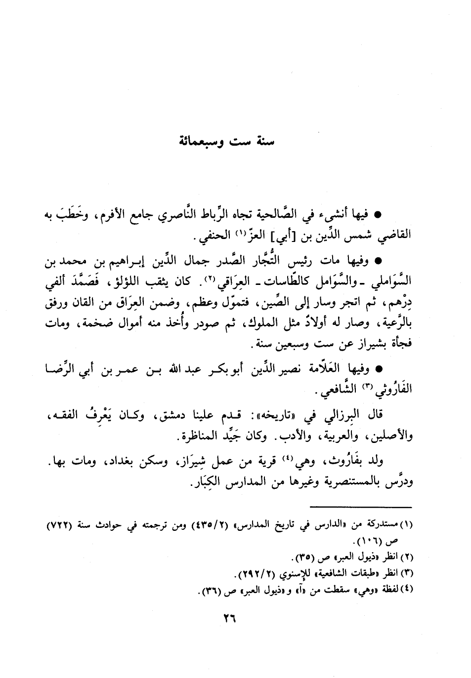 [1] مستدركة من «الدارس في تاريخ المدارس» (2/ 435) ومن ترجمته في حوادث سنة (722) ص (106) .