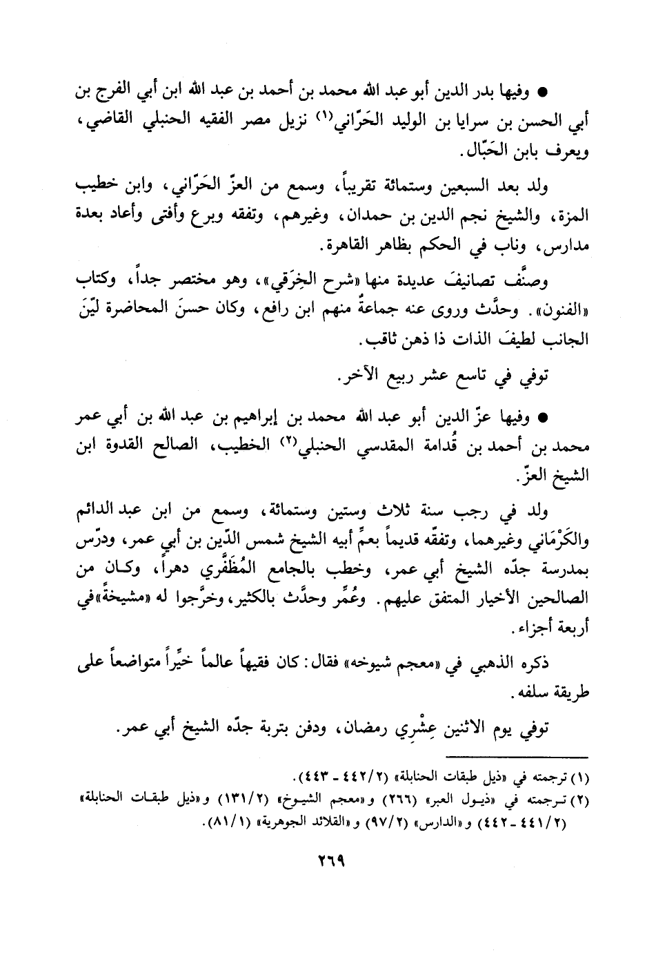 [2] ترجمته في «ذيول العبر» (266) و «معجم الشيوخ» (2/ 131) و «ذيل طبقات الحنابلة» (2/ 441- 442) و «الدارس» (2/ 97) و «القلائد الجوهرية» (1/ 81) .