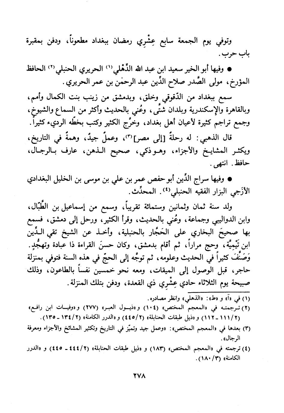 وفيها أبو الخير سعيد ابن عبد الله الدّهلي [1] الحريري الحنبلي [2] الحافظ المؤرخ، مولى الصّدر صلاح الدّين عبد الرحمن بن عمر الحريري.
