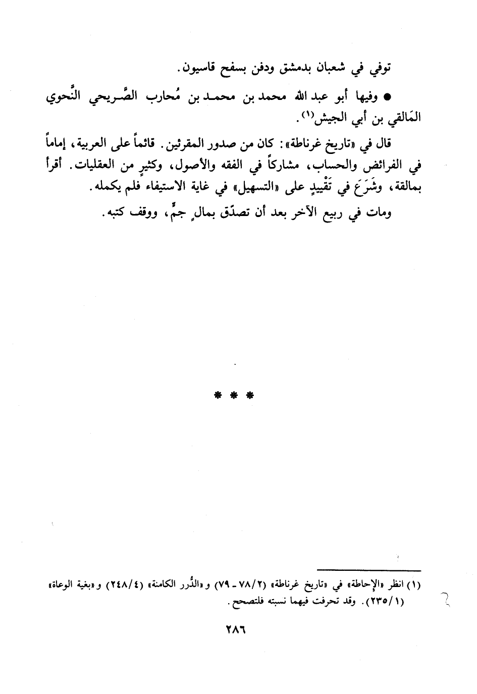[1] انظر «الإحاطة» في «تاريخ غرناطة» (2/ 78- 79) و «الدّرر الكامنة» (4/ 248) و «بغية الوعاة» (1/ 235) . وقد تحرفت فيهما نسبته فلتصحح.
