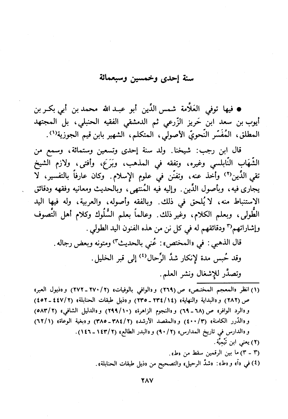 [4] في «آ» و «ط» : «شدّ الرحيل» والتصحيح من «ذيل طبقات الحنابلة» .