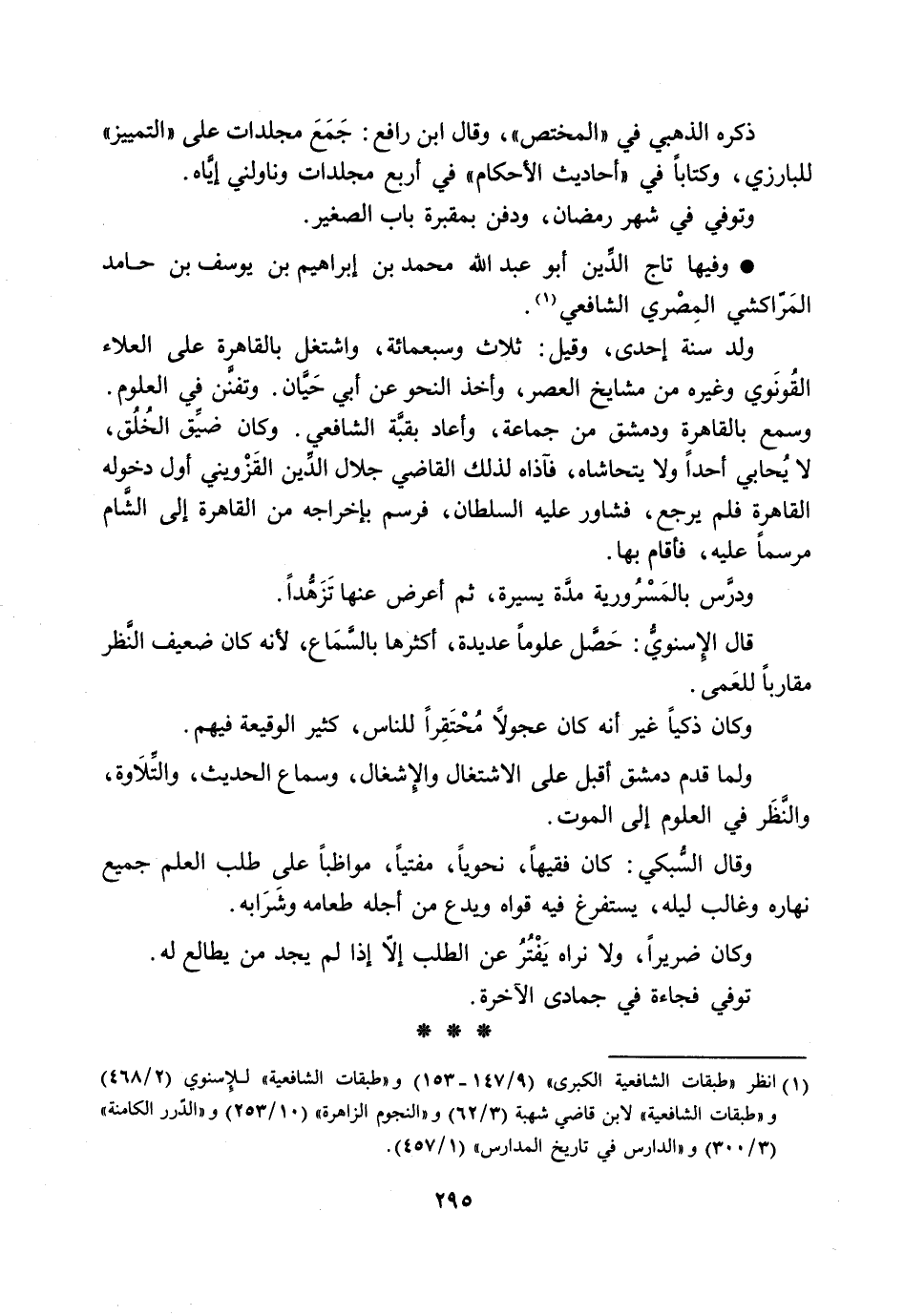[1] انظر «طبقات الشافعية الكبرى» (9/ 147- 153) و «طبقات الشافعية» للإسنوي (2/ 468) و «طبقات الشافعية» لابن قاضي شهبة (3/ 62) و «النجوم الزاهرة» (10/ 253) و «الدّرر الكامنة» (3/ 300) و «الدارس في تاريخ المدارس» (1/ 457) .