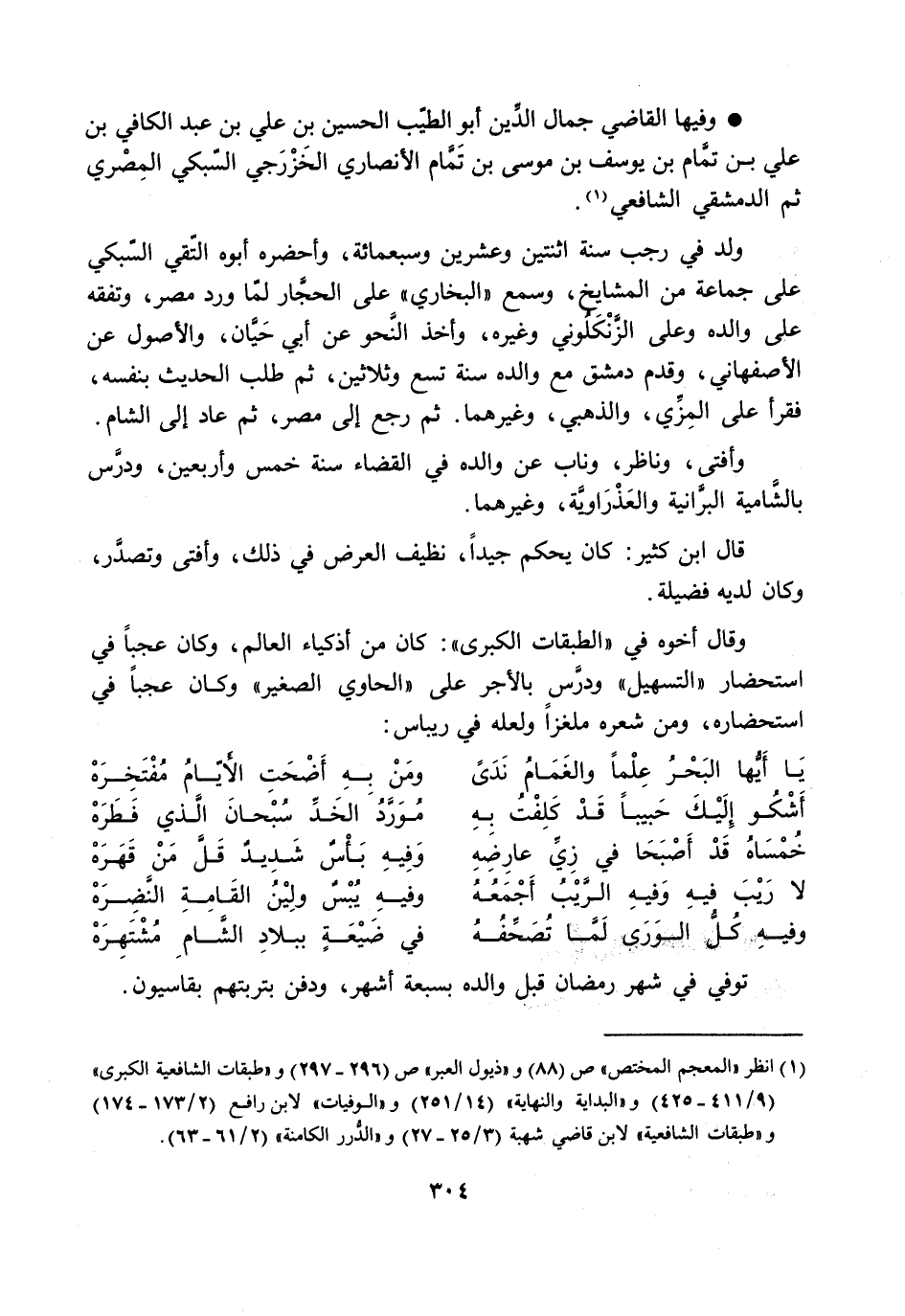 [1] انظر «المعجم المختص» ص (88) و «ذيول العبر» ص (296- 297) و «طبقات الشافعية الكبرى» (9/ 411- 425) و «البداية والنهاية» (14/ 251) و «الوفيات» لابن رافع (2/ 173- 174) و «طبقات الشافعية» لابن قاضي شهبة (3/ 25- 27) و «الدّرر الكامنة» (2/ 61- 63) .