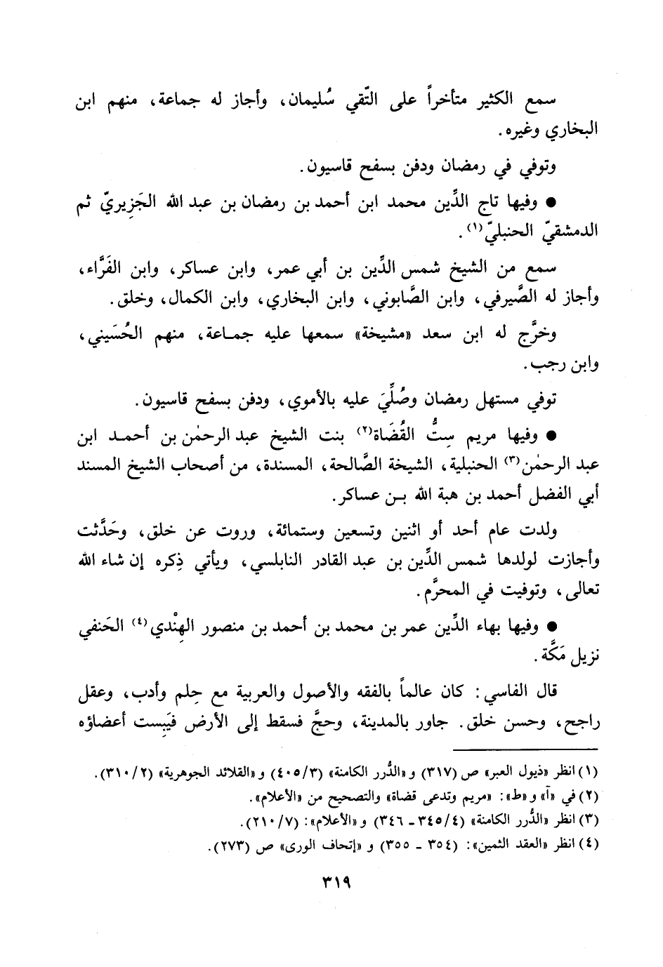 [4] انظر «العقد الثمين» : (354- 355) و «إتحاف الورى» ص (273) .