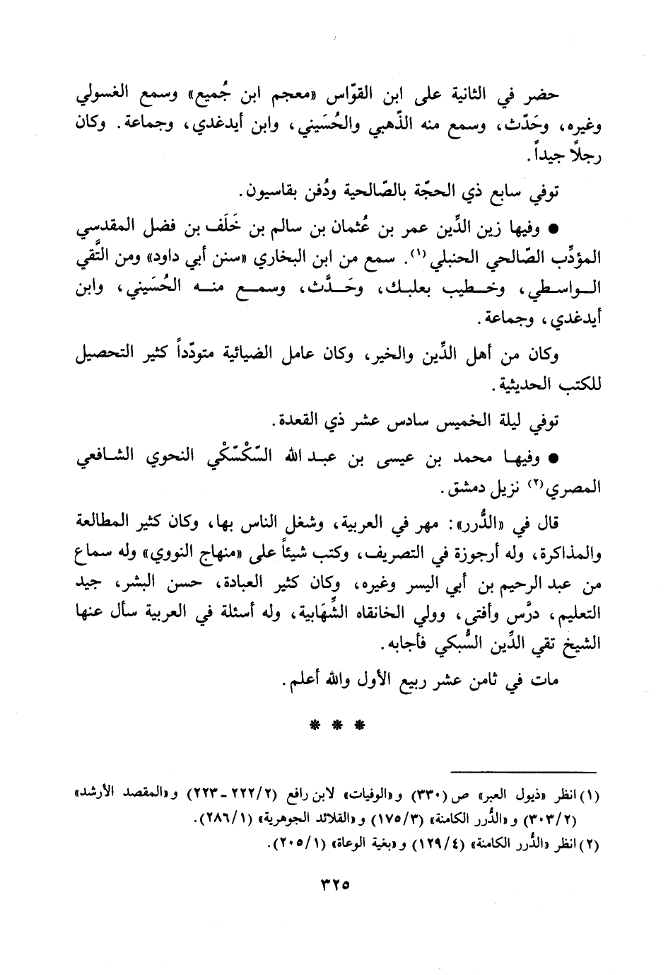 [1] انظر «ذيول العبر» ص (330) و «الوفيات» لابن رافع (2/ 222- 223) و «المقصد الأرشد» (2/ 303) و «الدّرر الكامنة» (3/ 175) و «القلائد الجوهرية» (1/ 286) .
