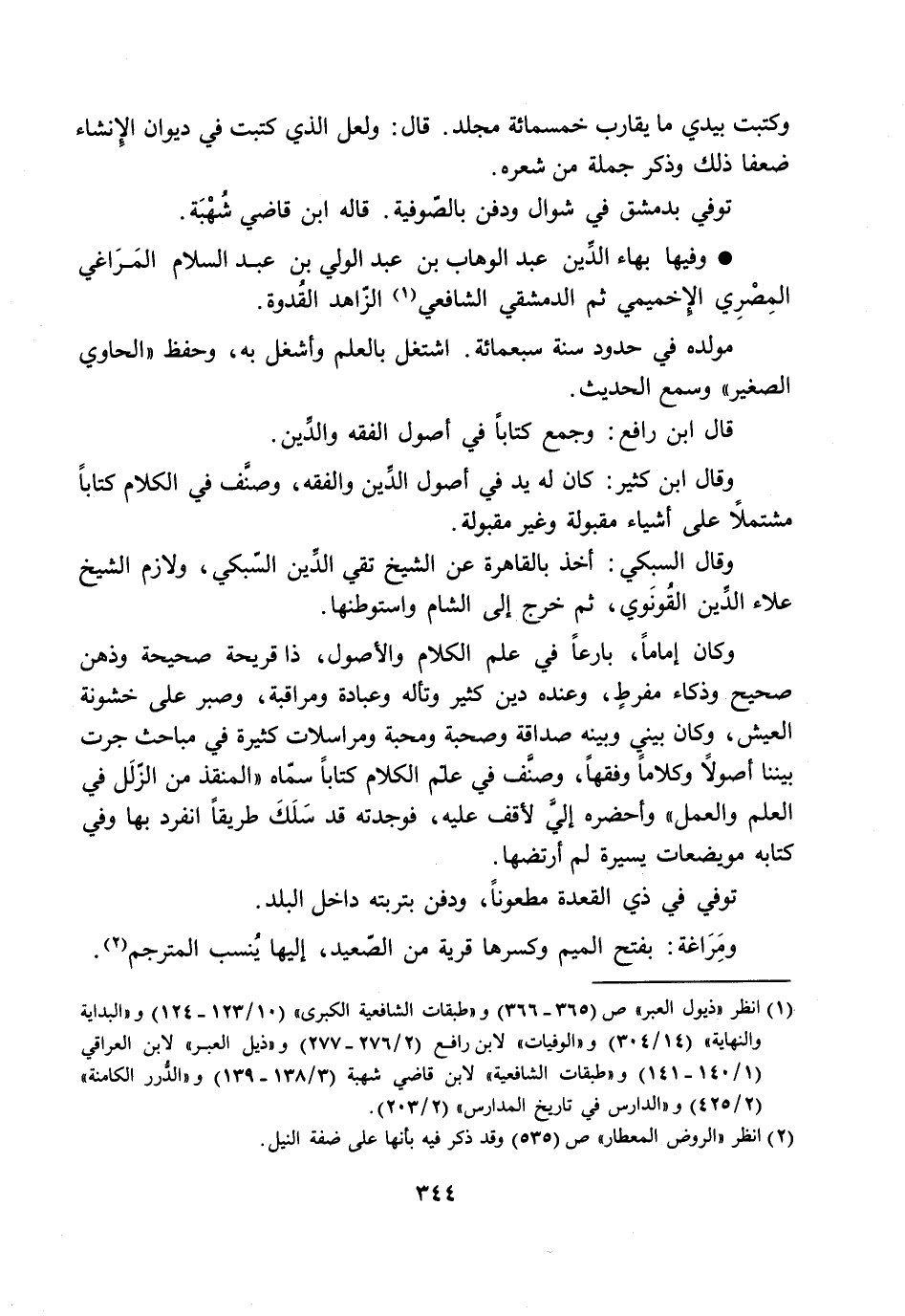 وفيها بهاء الدّين عبد الوهاب بن عبد الولي بن عبد السلام المراغي المصري الإخميمي ثم الدمشقي الشافعي [1] الزّاهد القدوة.