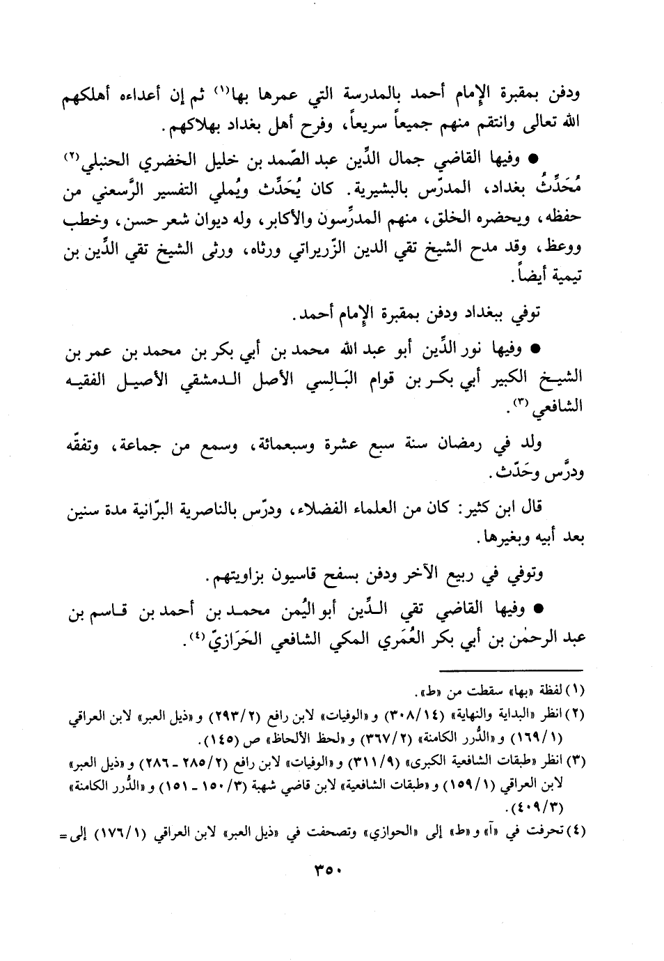 [2] انظر «البداية والنهاية» (14/ 308) و «الوفيات» لابن رافع (2/ 293) و «ذيل العبر» لابن العراقي (1/ 169) و «الدّرر الكامنة» (2/ 367) و «لحظ الألحاظ» ص (145) .