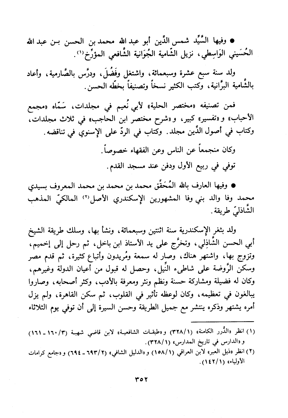 وفيها السّيّد شمس الدّين أبو عبد الله محمد بن الحسن بن عبد الله الحسيني الواسطي، نزيل الشّامية الجوانية الشّافعي المؤرّخ [1] .