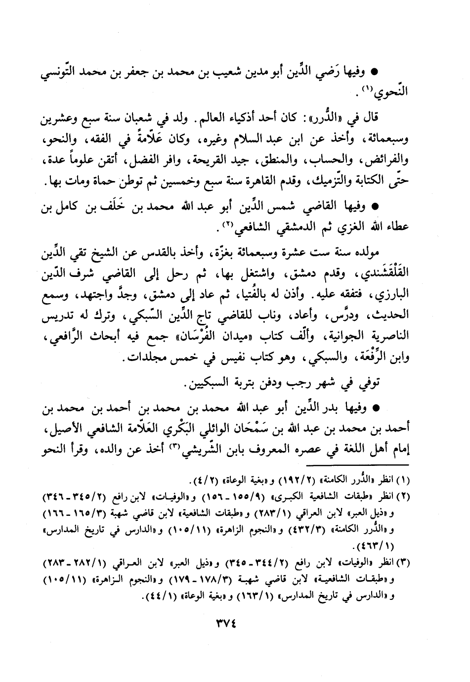 [3] انظر «الوفيات» لابن رافع (2/ 344- 345) و «ذيل العبر» لابن العراقي (1/ 282- 283) و «طبقات الشافعية» لابن قاضي شهبة (3/ 178- 179) و «النجوم الزاهرة» (11/ 105) و «الدارس في تاريخ المدارس» (1/ 163) و «بغية الوعاة» (1/ 44) .