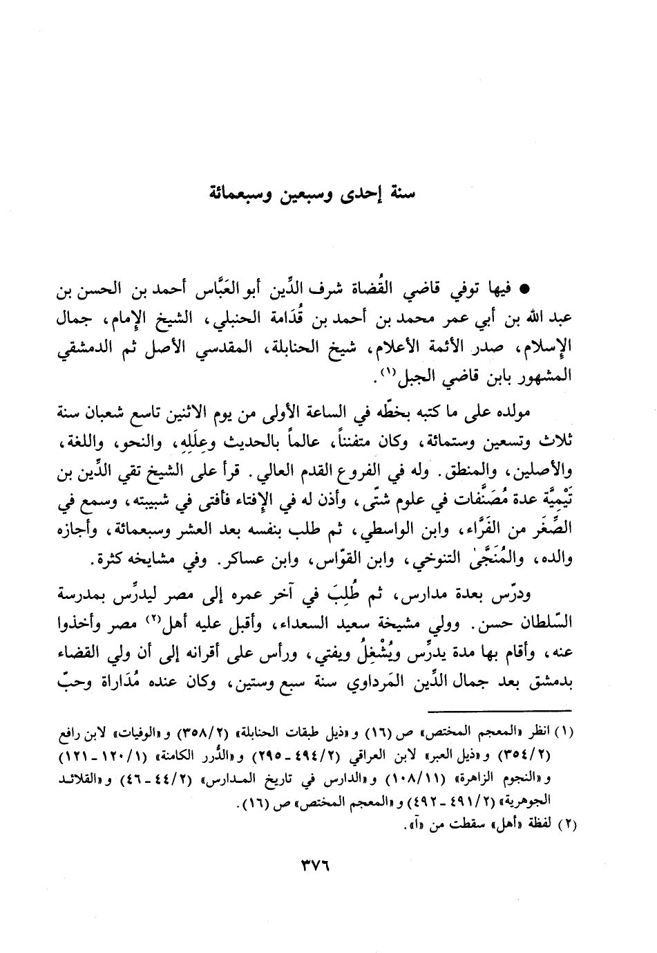 سنة إحدى وسبعين وسبعمائة