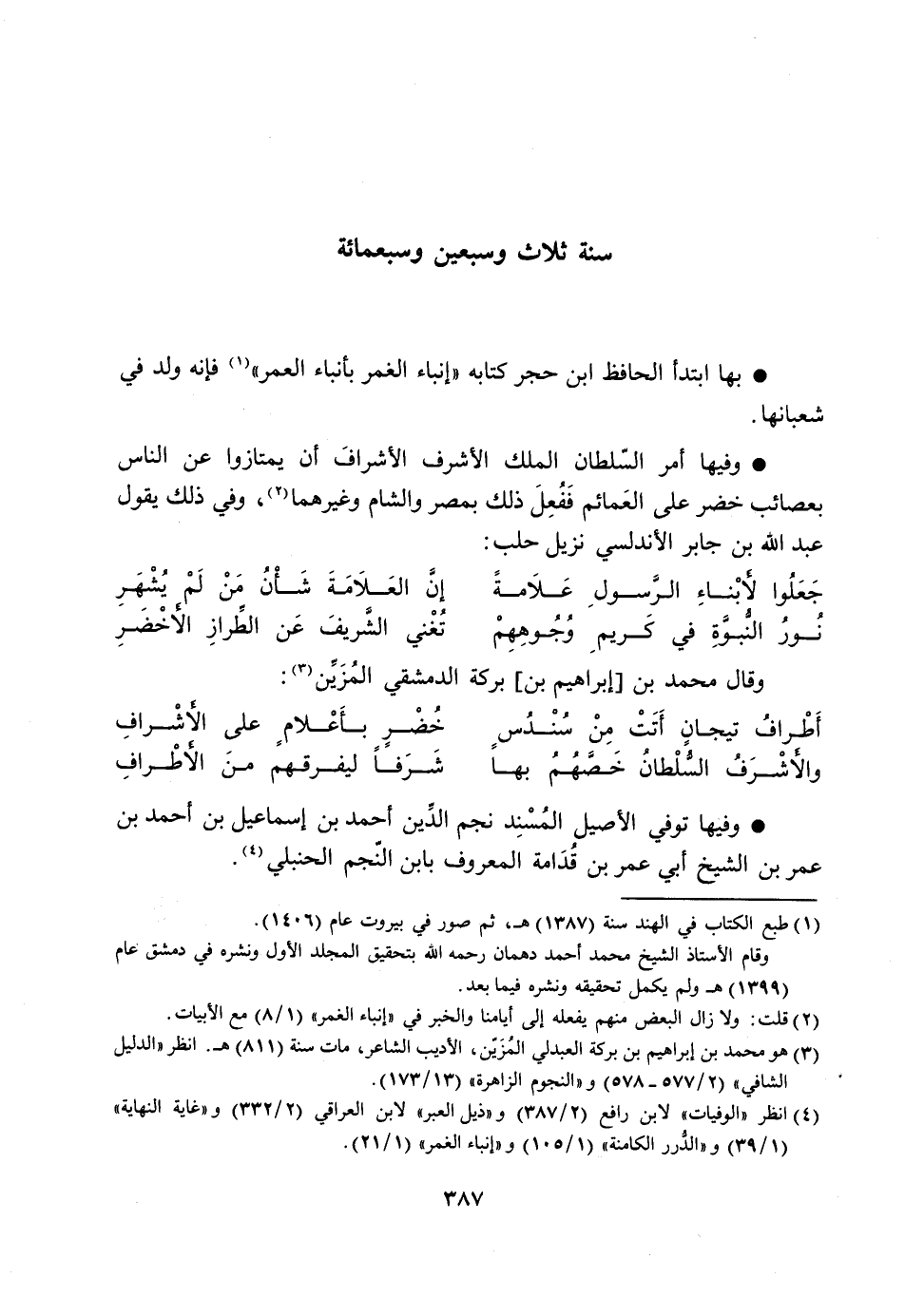 [3] هو محمد بن إبراهيم بن بركة العبدلي المزيّن، الأديب الشاعر، مات سنة (811) هـ. انظر «الدليل الشافي» (2/ 577- 578) و «النجوم الزاهرة» (13/ 173) .