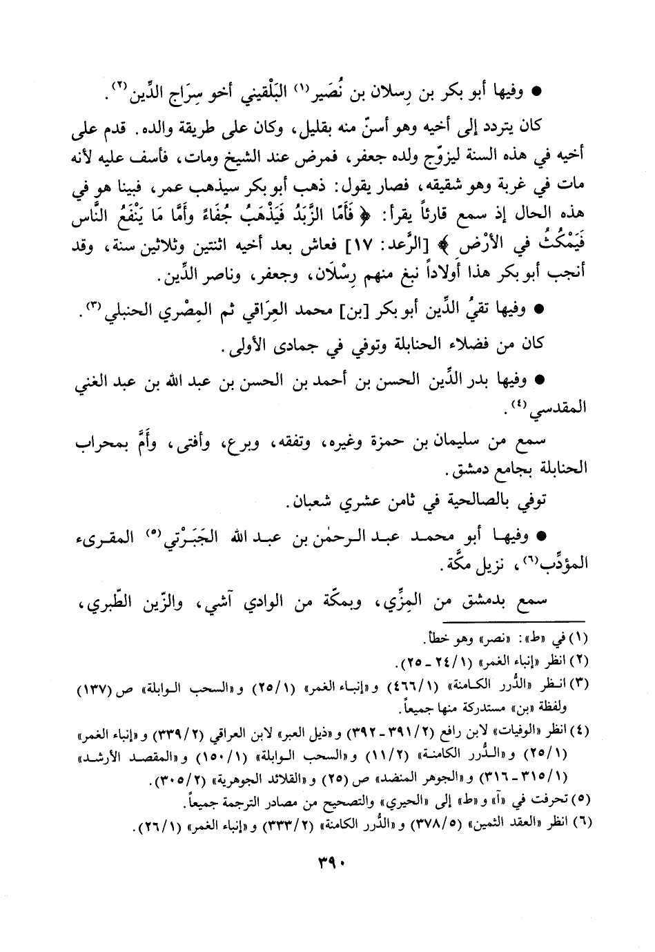 [3] انظر «الدّرر الكامنة» (1/ 466) و «إنباء الغمر» (1/ 25) و «السحب الوابلة» ص (137) ولفظة «بن» مستدركة منها جميعا.