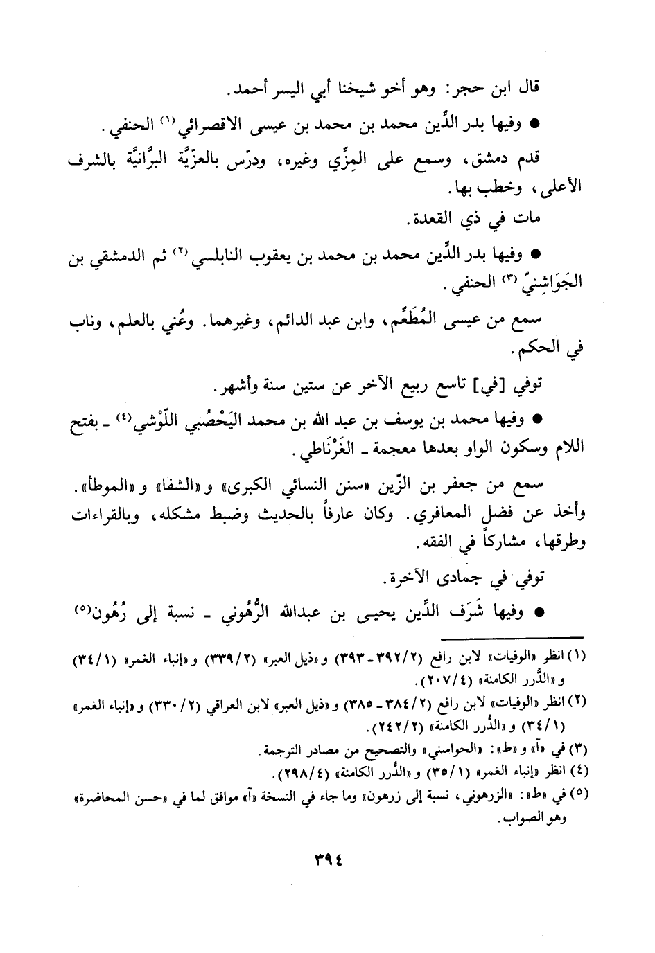 [2] انظر «الوفيات» لابن رافع (2/ 384- 385) و «ذيل العبر» لابن العراقي (2/ 330) و «إنباء الغمر» (1/ 34) و «الدّرر الكامنة» (2/ 242) .