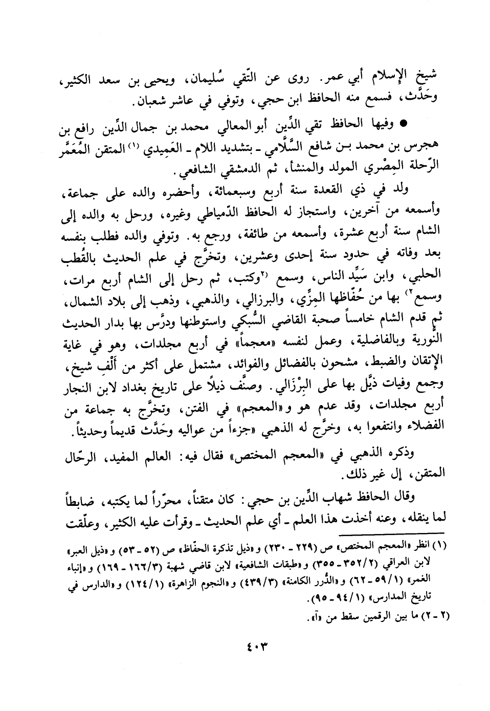 [1] انظر «المعجم المختص» ص (229- 230) و «ذيل تذكرة الحفّاظ» ص (52- 53) و «ذيل العبر» لابن العراقي (2/ 352- 355) و «طبقات الشافعية» لابن قاضي شهبة (3/ 166- 169) و «إنباء الغمر» (1/ 59- 62) و «الدّرر الكامنة» (3/ 439) و «النجوم الزاهرة» (1/ 124) و «الدارس في تاريخ المدارس» (1/ 94- 95) .
