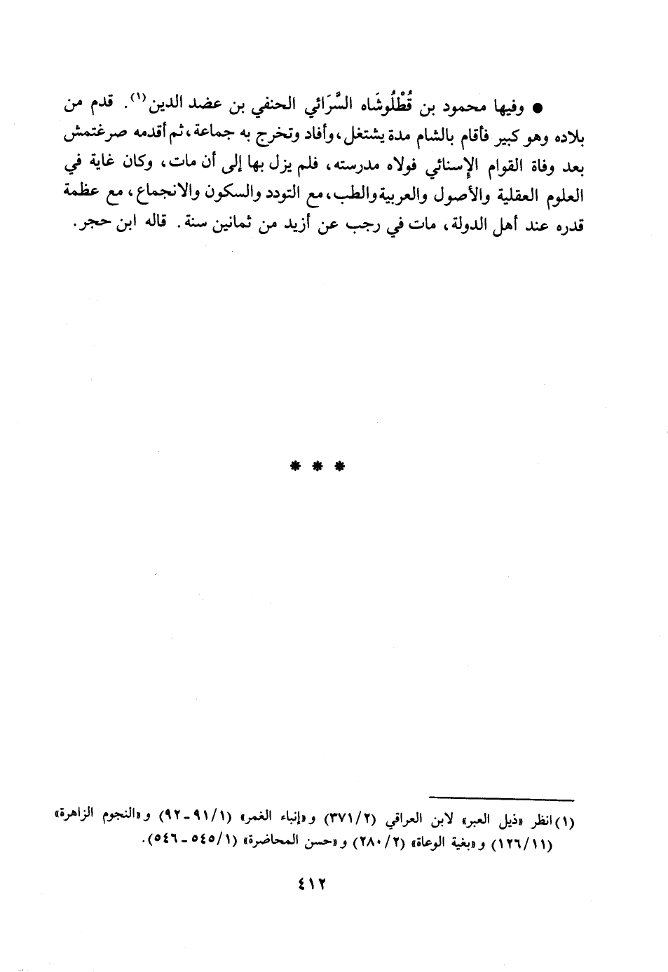 [1] انظر «ذيل العبر» لابن العراقي (2/ 371) و «إنباء الغمر» (1/ 91- 92) و «النجوم الزاهرة» (11/ 126) و «بغية الوعاة» (2/ 280) و «حسن المحاضرة» (1/ 545- 546) .