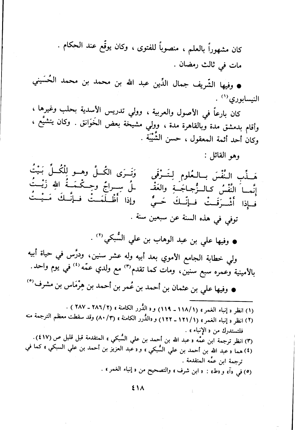 وفيها الشّريف جمال الدّين عبد الله بن محمد بن محمد الحسيني النيسابوري [1] .
