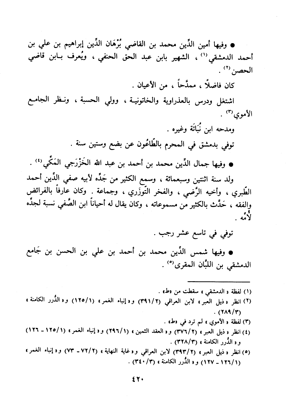[4] انظر «ذيل العبر» (2/ 376) و «العقد الثمين» (1/ 296) و «إنباء الغمر» (1/ 125- 126) و «الدّرر الكامنة» (3/ 328) .