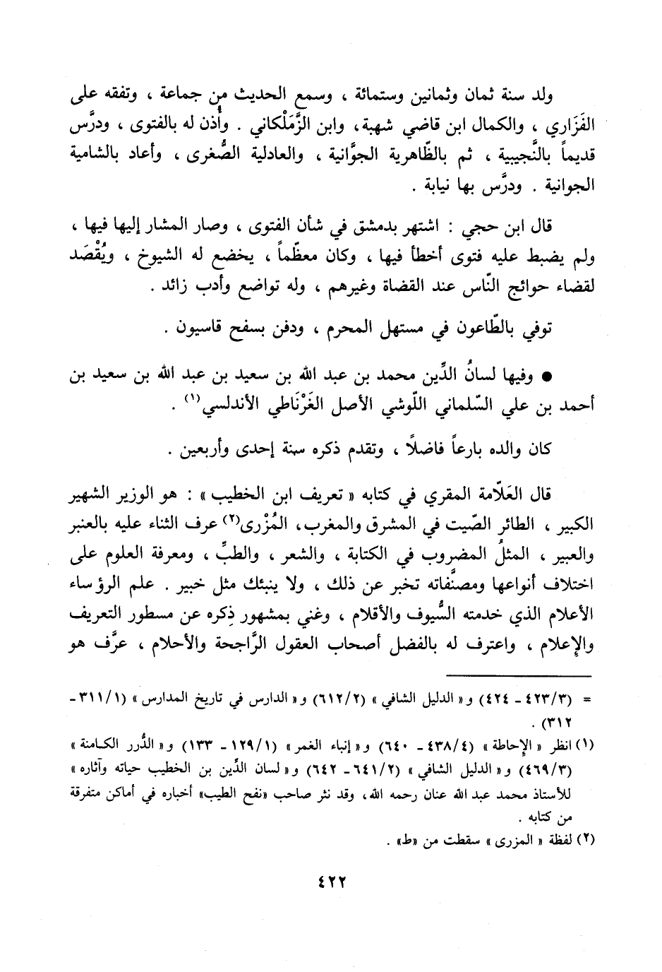 وفيها لسان الدّين محمد بن عبد الله بن سعيد بن عبد الله بن سعيد بن أحمد بن علي السّلماني اللّوشي الأصل الغرناطي الأندلسي [1] .