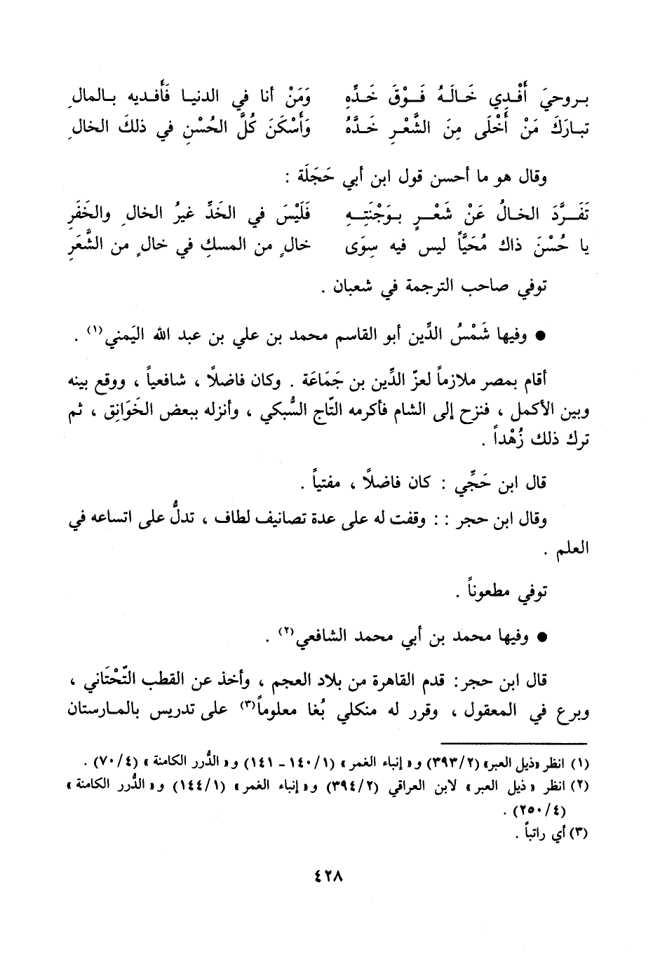 [1] انظر «ذيل العبر» (2/ 393) و «إنباء الغمر» (1/ 140- 141) و «الدّرر الكامنة» (4/ 70) .
