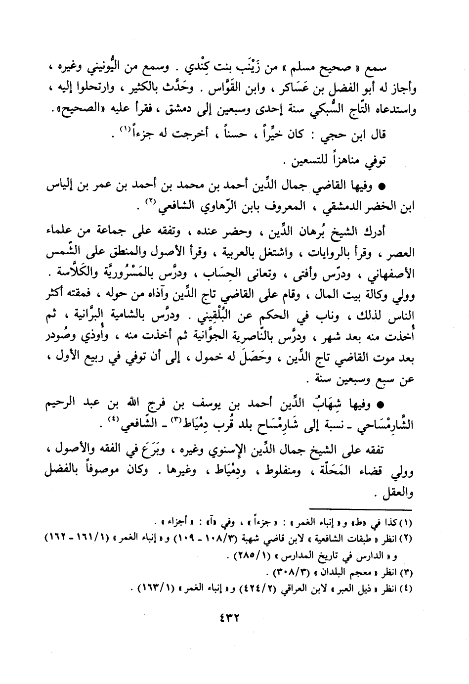 [2] انظر «طبقات الشافعية» لابن قاضي شهبة (3/ 108- 109) و «إنباء الغمر» (1/ 161- 162) و «الدارس في تاريخ المدارس» (1/ 285) .