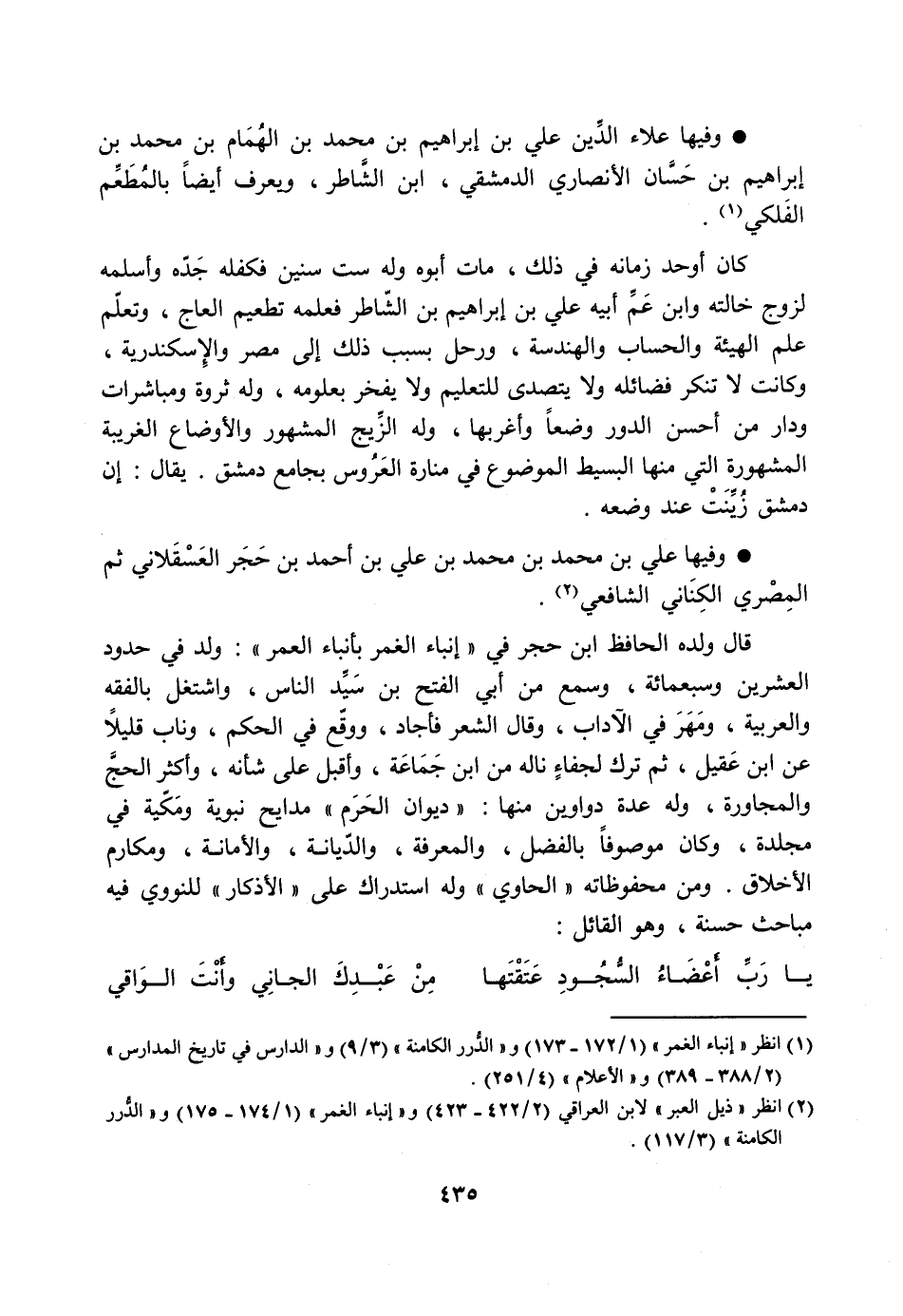 [1] انظر «إنباء الغمر» (1/ 172- 173) و «الدّرر الكامنة» (3/ 9) و «الدارس في تاريخ المدارس» (2/ 388- 389) و «الأعلام» (4/ 251) .