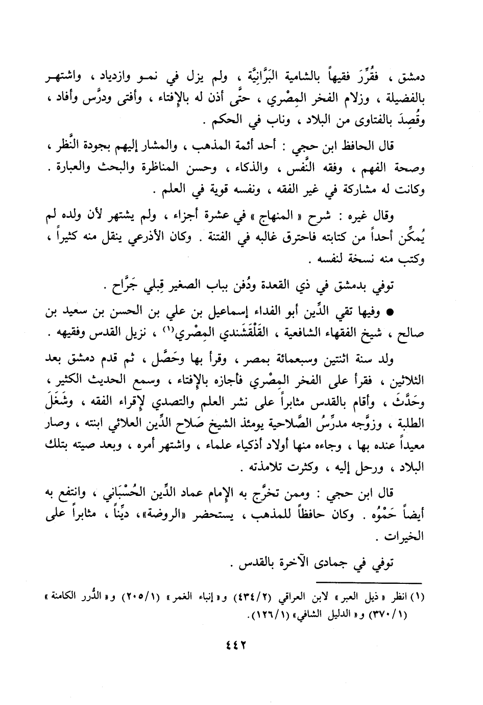وفيها تقي الدّين أبو الفداء إسماعيل بن علي بن الحسن بن سعيد بن صالح، شيخ الفقهاء الشافعية، القلقشندي المصري [1] ، نزيل القدس وفقيهه.
