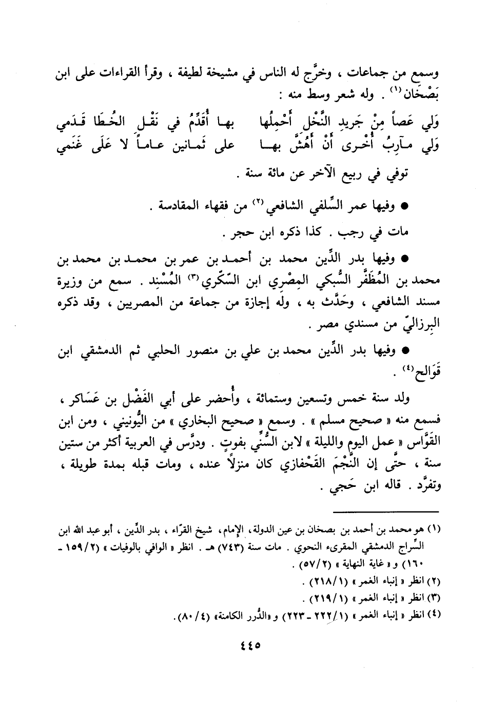 [4] انظر «إنباء الغمر» (1/ 222- 223) و «الدّرر الكامنة» (4/ 80) .