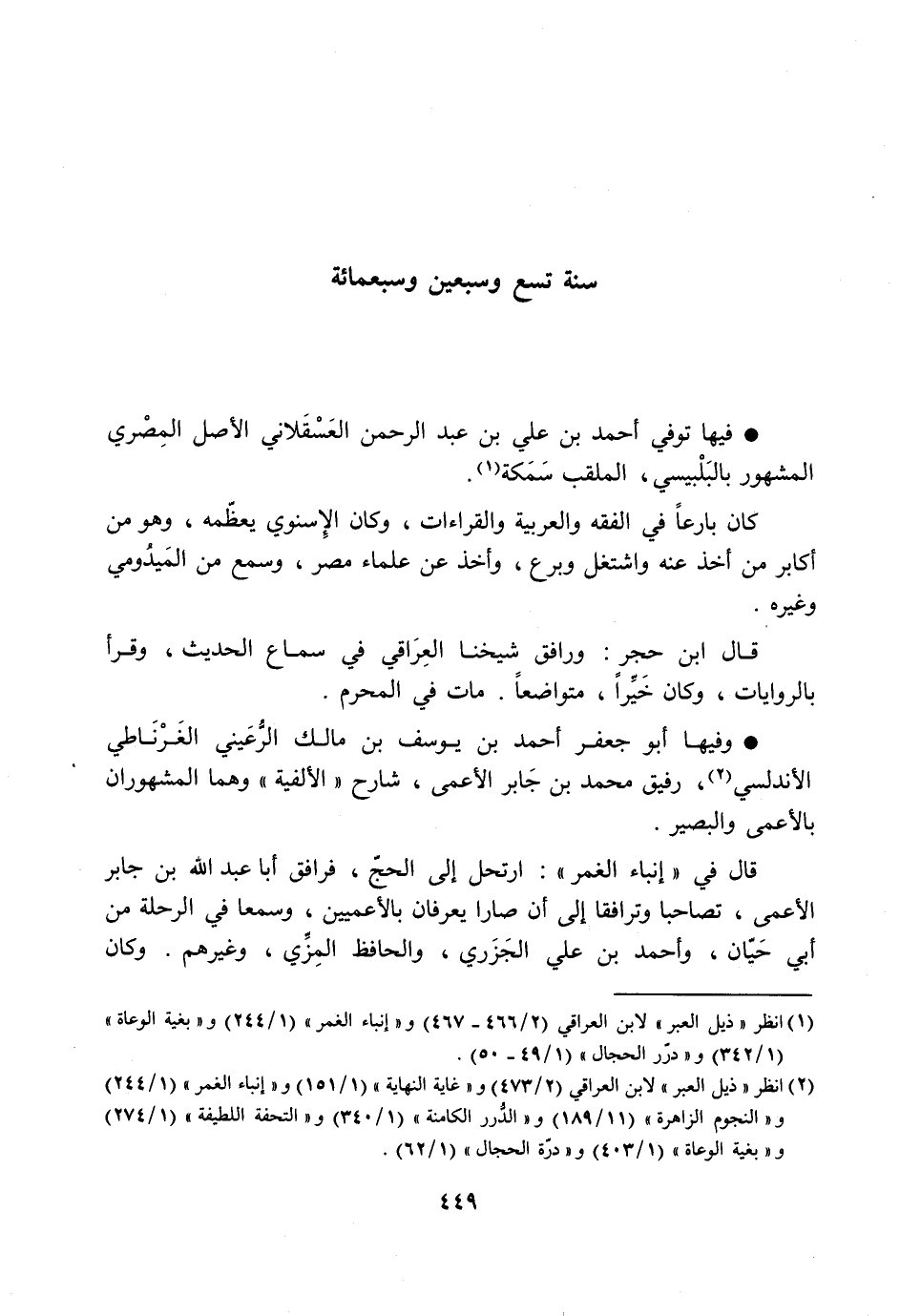 [1] انظر «ذيل العبر» لابن العراقي (2/ 466- 467) و «إنباء الغمر» (1/ 244) و «بغية الوعاة» (1/ 342) و «درّر الحجال» (1/ 49- 50) .