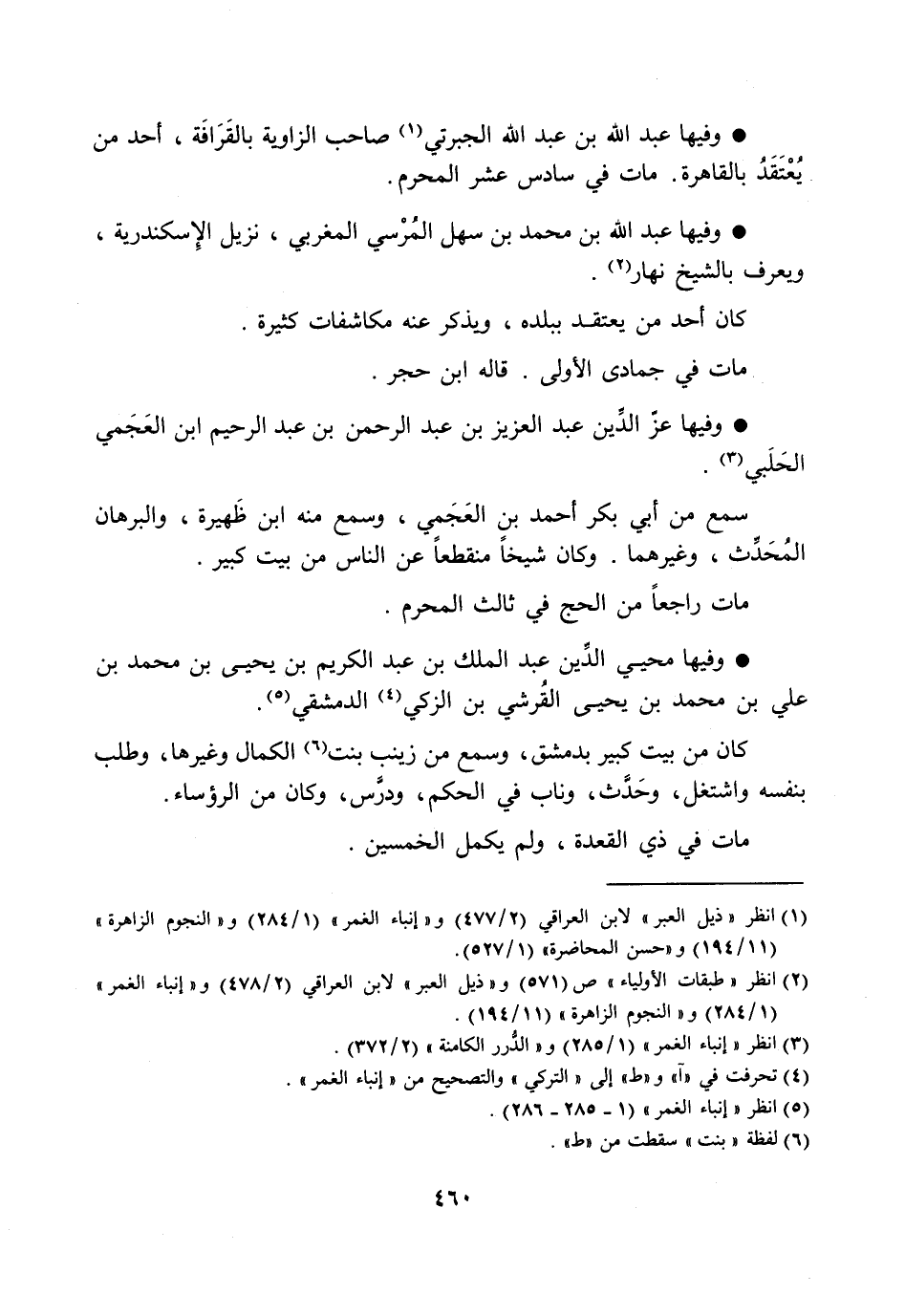 [2] انظر «طبقات الأولياء» ص (571) و «ذيل العبر» لابن العراقي (2/ 478) و «إنباء الغمر» (1/ 284) و «النجوم الزاهرة» (11/ 194) .