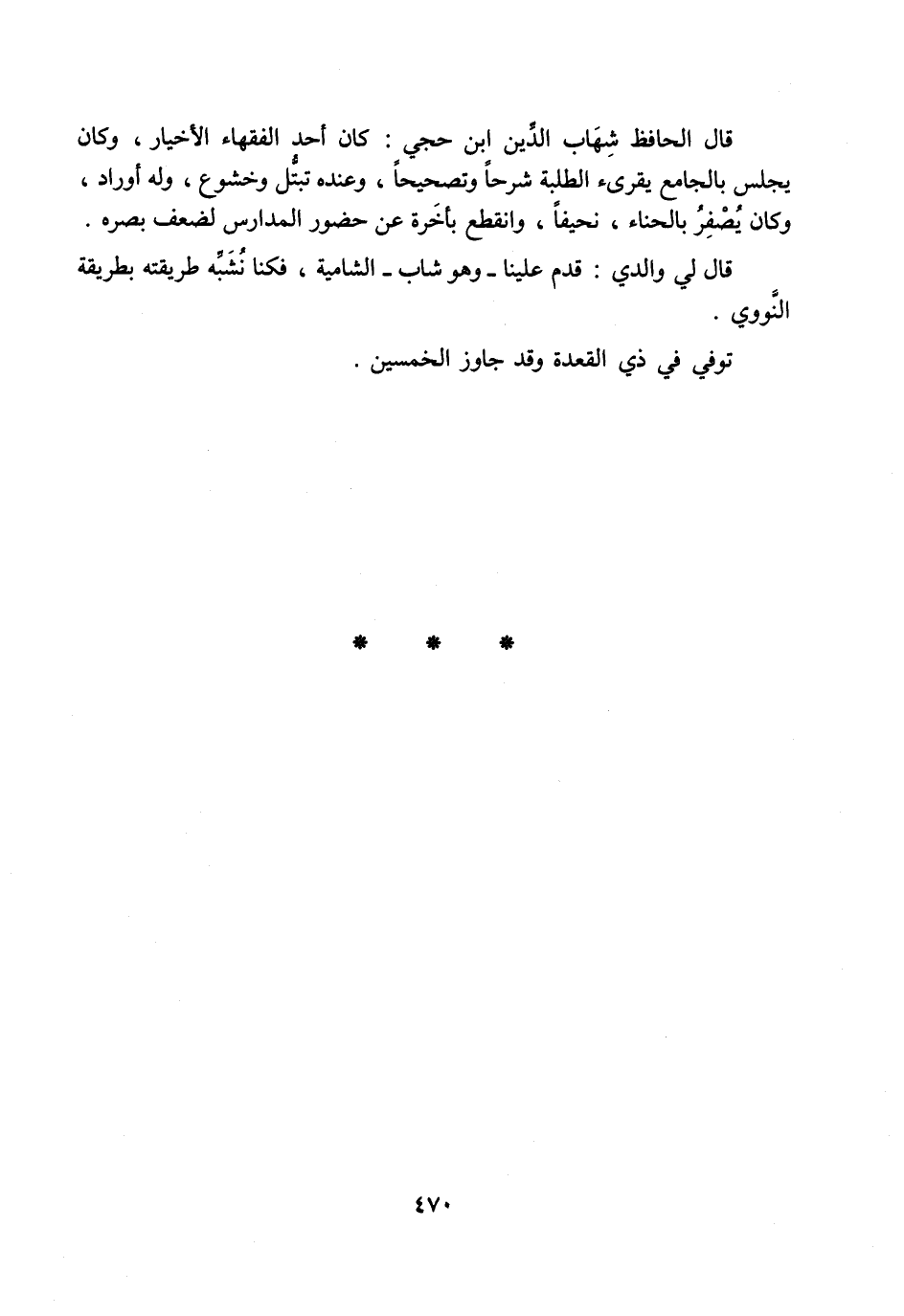 قال لي والدي: قدم علينا- وهو شاب- الشامية، فكنا نشبّه طريقته بطريقة النّووي.