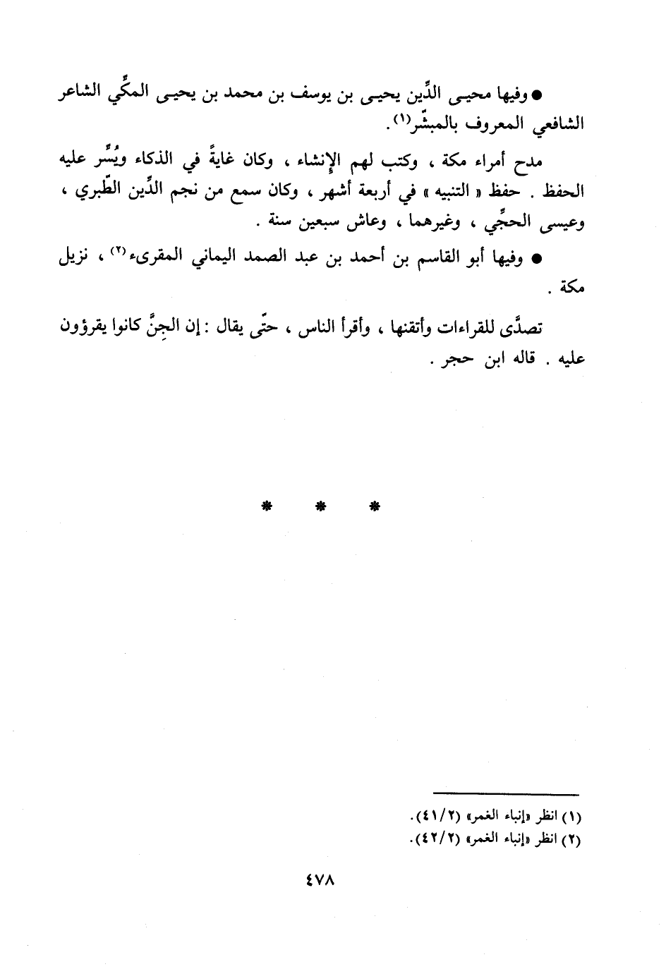 وفيها محيى الدّين يحيى بن يوسف بن محمد بن يحيى المكّي الشاعر الشافعي المعروف بالمبشّر [1] .