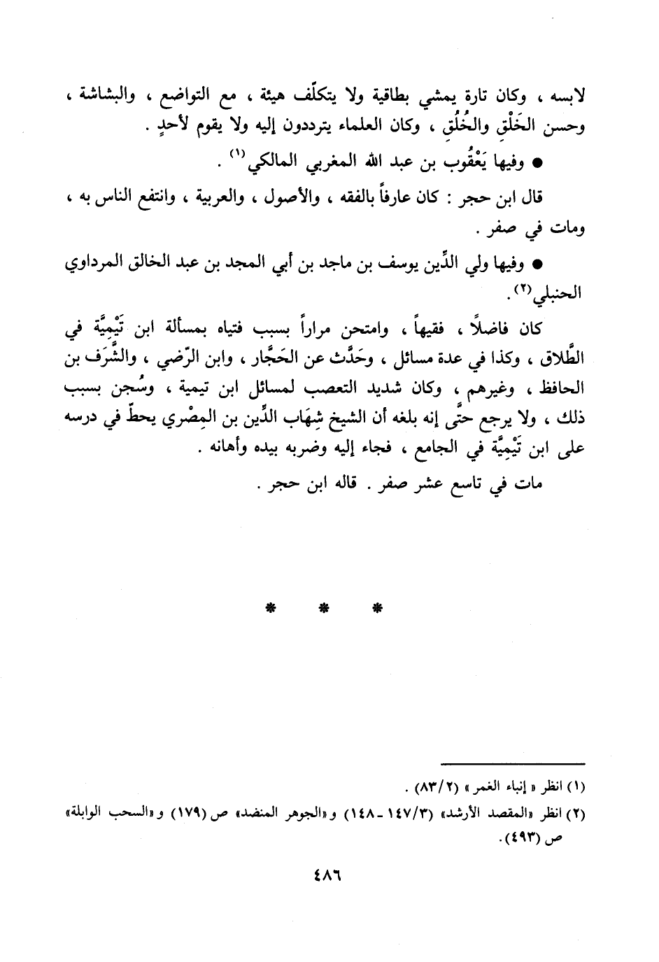 [2] انظر «المقصد الأرشد» (3/ 147- 148) و «الجوهر المنضد» ص (179) و «السحب الوابلة» ص (493) .