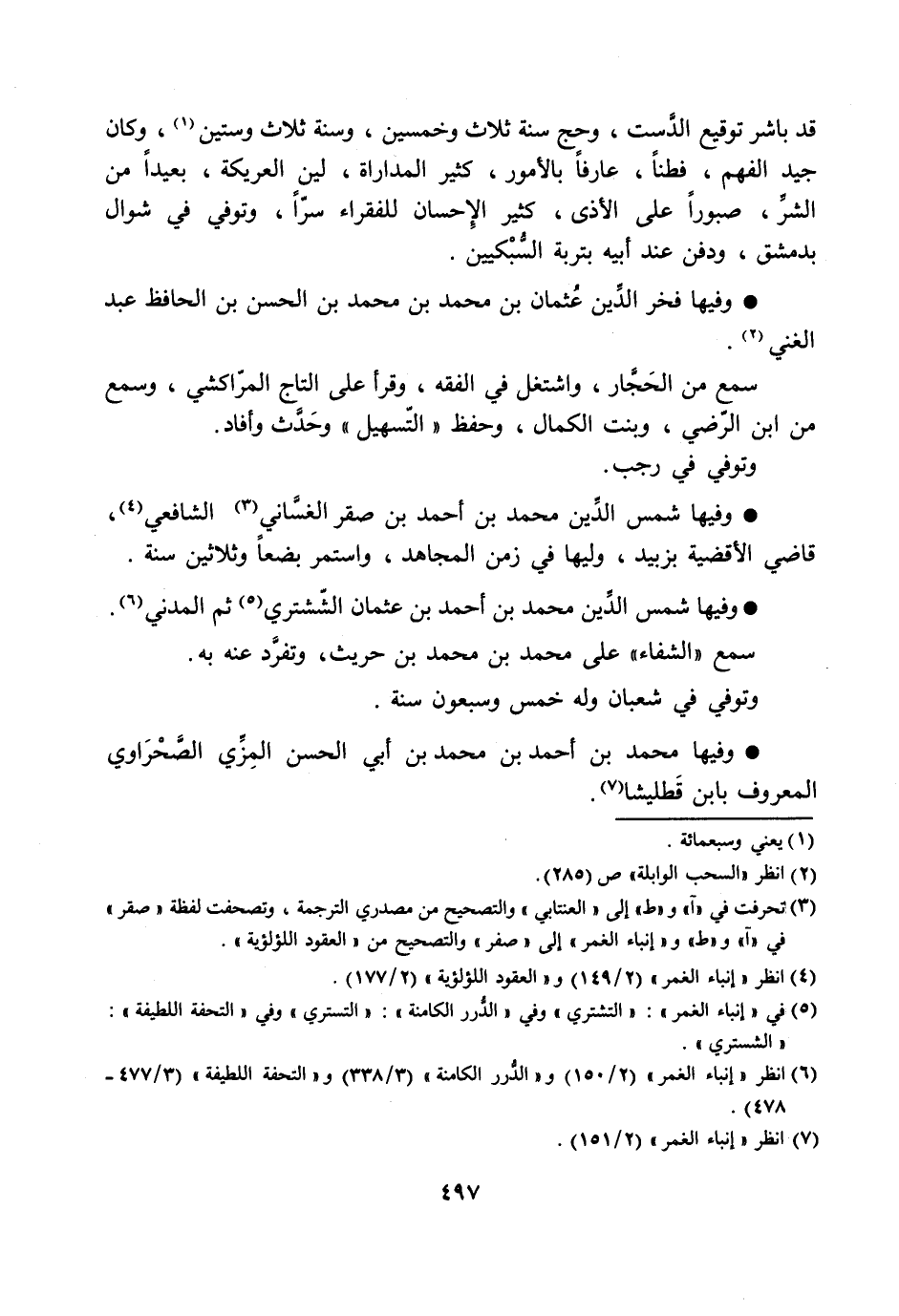 [6] انظر «إنباء الغمر» (2/ 150) و «الدّرر الكامنة» (3/ 338) و «التحفة اللطيفة» (3/ 477- 478) .