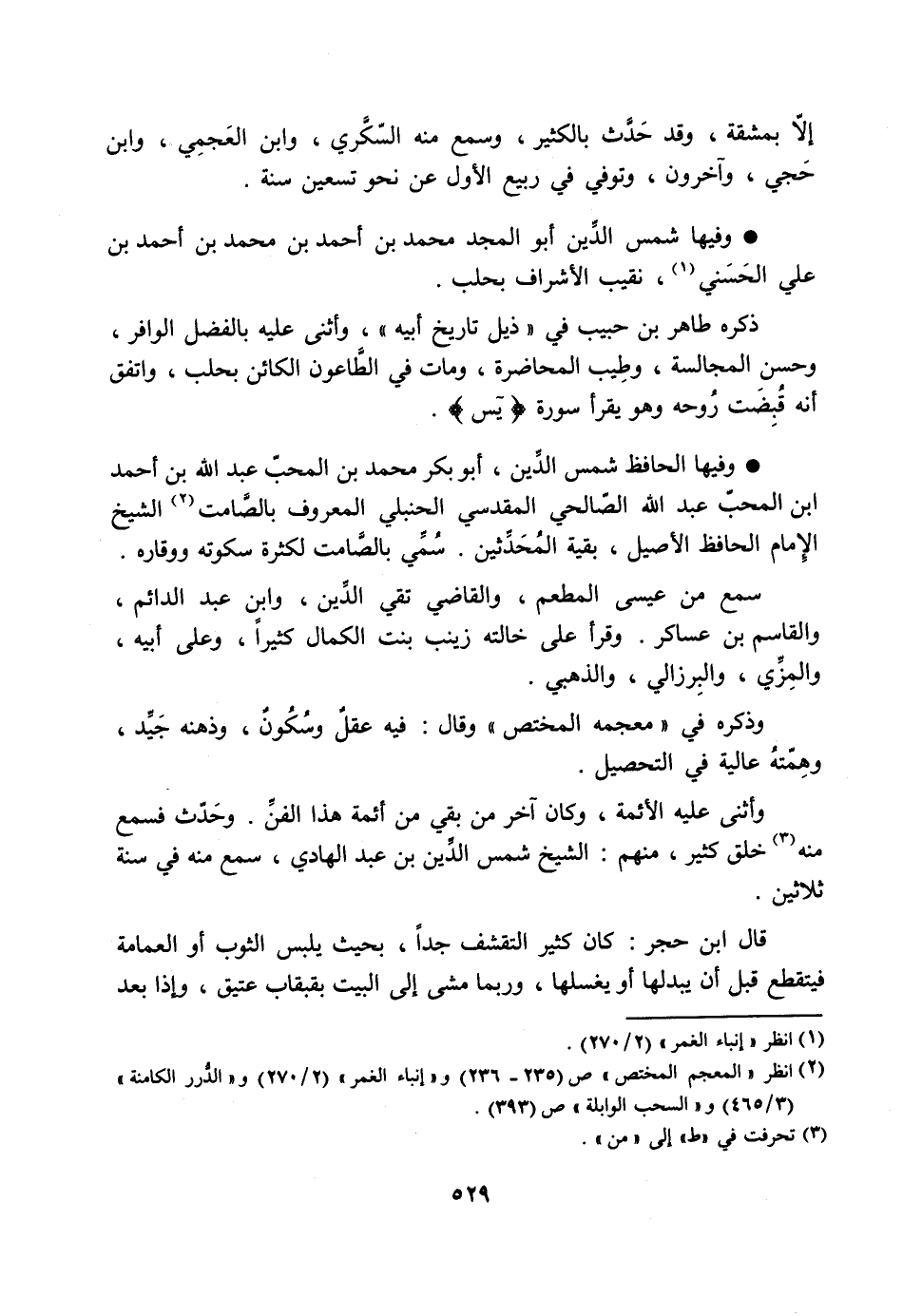 [2] انظر «المعجم المختص» ص (235- 236) و «إنباء الغمر» (2/ 270) و «الدّرر الكامنة» (3/ 465) و «السحب الوابلة» ص (393) .