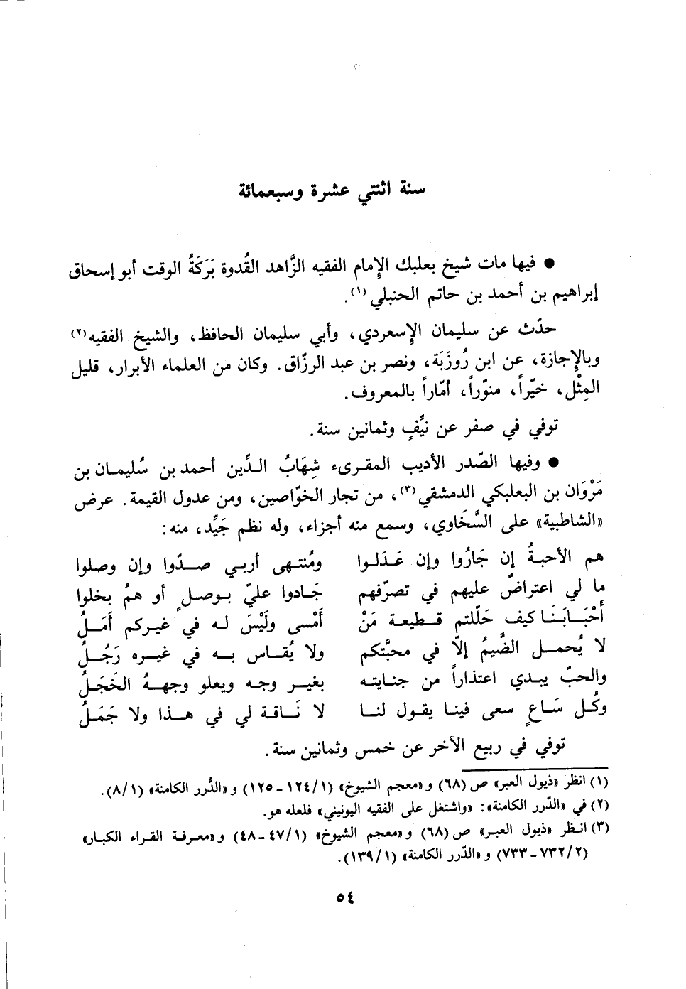 فيها مات شيخ بعلبك الإمام الفقيه الزّاهد القدوة بركة الوقت أبو إسحاق إبراهيم بن أحمد بن حاتم الحنبلي [1] .