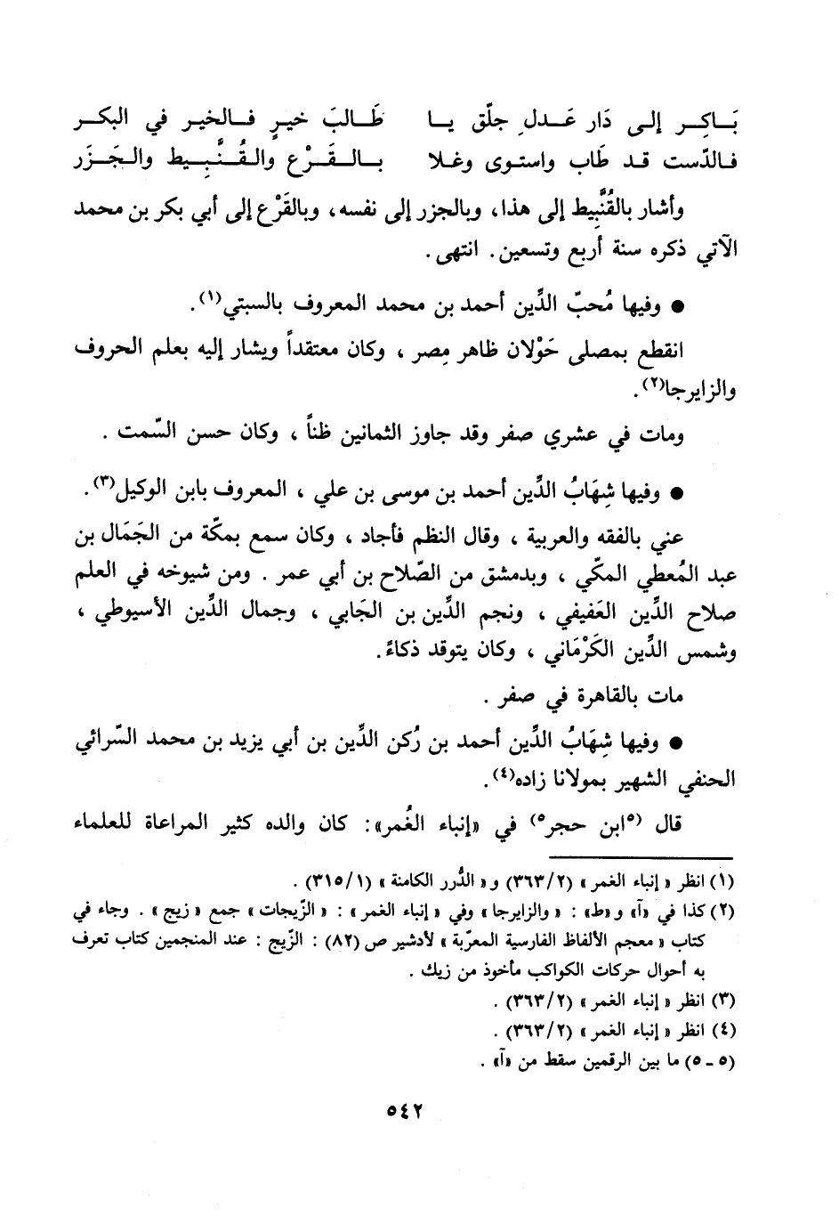 [2] كذا في «آ» و «ط» : «والزايرجا» وفي «إنباء الغمر» : «الزّيجات» جمع «زيج» . وجاء في كتاب «معجم الألفاظ الفارسية المعرّبة» لأدشير ص (82) : الزّيج: عند المنجمين كتاب تعرف به أحوال حركات الكواكب مأخوذ من زيك.