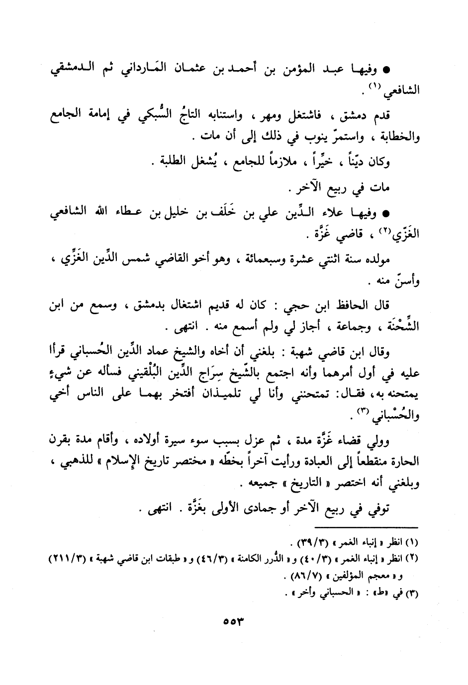 [2] انظر «إنباء الغمر» (3/ 40) و «الدّرر الكامنة» (3/ 46) و «طبقات ابن قاضي شهبة» (3/ 211) و «معجم المؤلفين» (7/ 86) .