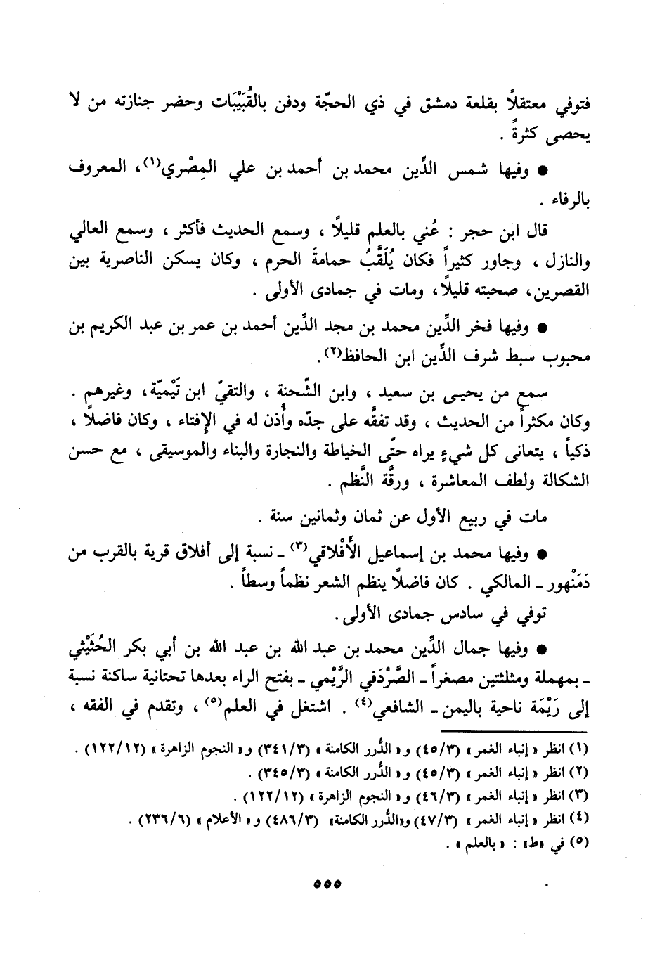 [4] انظر «إنباء الغمر» (3/ 47) و «الدّرر الكامنة» (3/ 486) و «الأعلام» (6/ 236) .