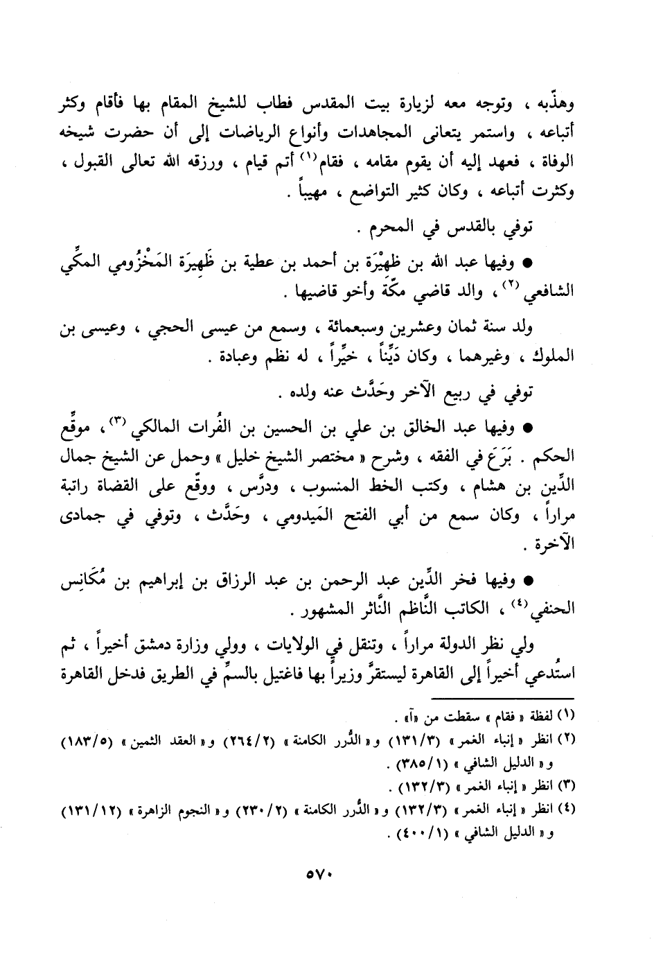 [4] انظر «إنباء الغمر» (3/ 132) و «الدّرر الكامنة» (2/ 230) و «النجوم الزاهرة» (12/ 131) و «الدليل الشافي» (1/ 400) .