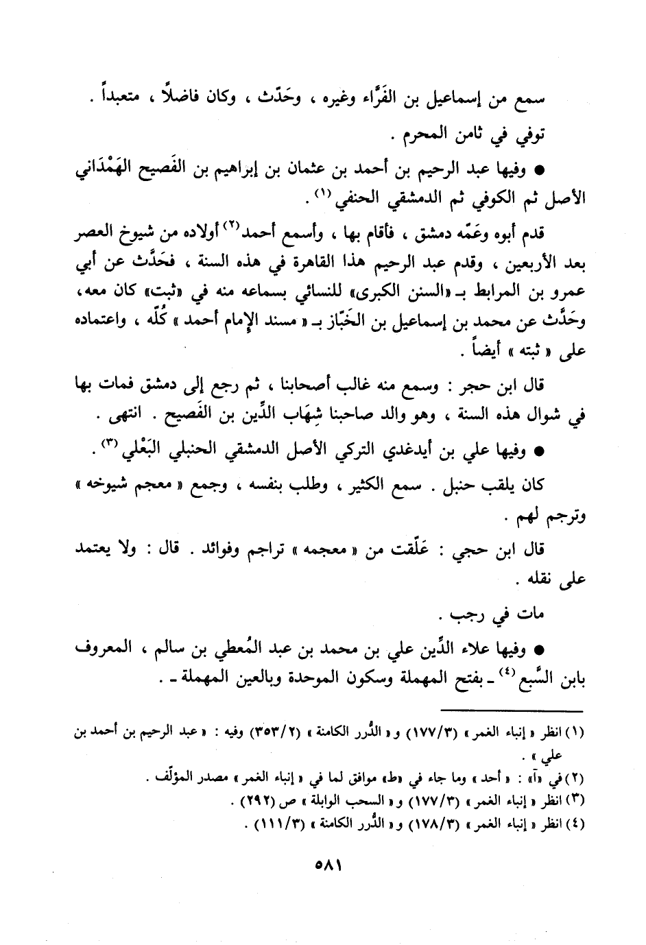 وفيها عبد الرحيم بن أحمد بن عثمان بن إبراهيم بن الفصيح الهمداني الأصل ثم الكوفي ثم الدمشقي الحنفي [1] .