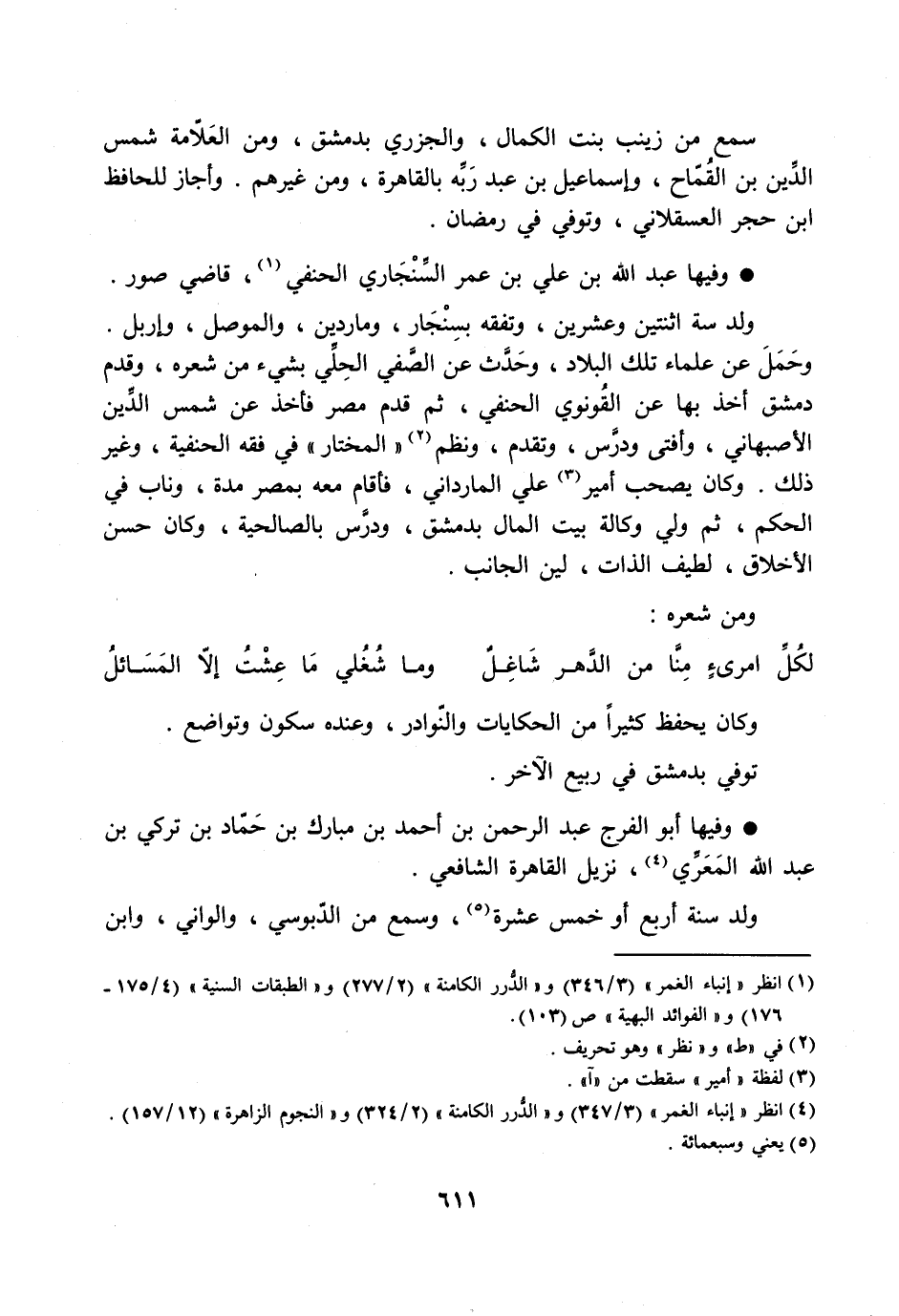 وفيها عبد الله بن علي بن عمر السّنجاري الحنفي [1] ، قاضي صور.