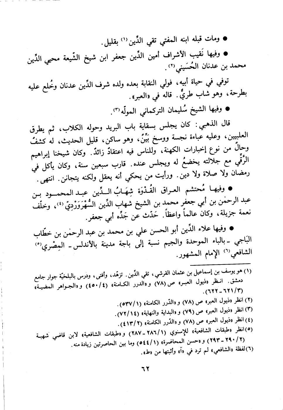 [5] انظر «طبقات الشافعية» للإسنوي (1/ 286- 287) و «طبقات الشافعية» لابن قاضي شهبة (2/ 290- 293) و «حسن المحاضرة» (1/ 544) وما بين الحاصرتين زيادة منه.