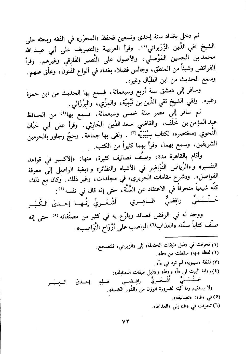 حنبليّ أشعريّ رافضي هذه إحدى العبر ولا يستقيم وما أثبته لضرورة الوزن من «الدّرر الكامنة» .
