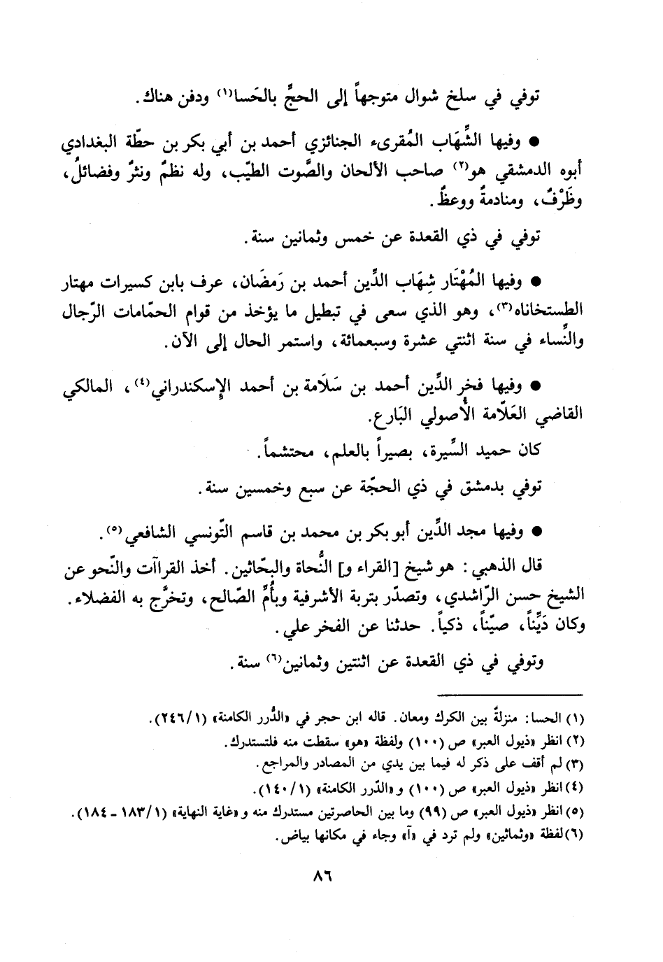 [4] انظر «ذيول العبر» ص (100) و «الدّرر الكامنة» (1/ 140) .