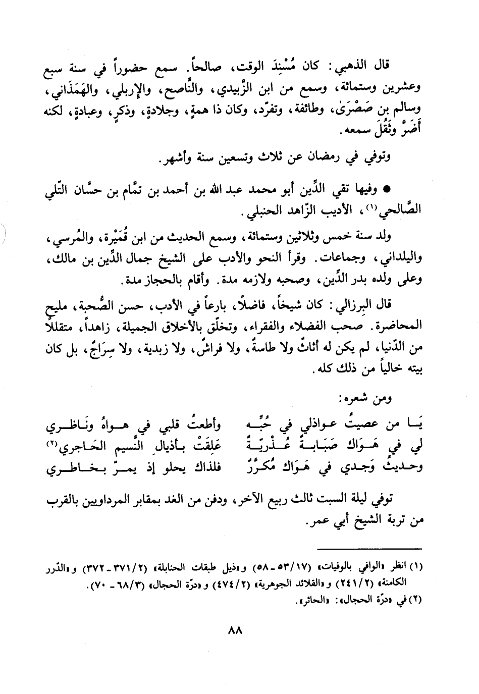 وفيها تقي الدّين أبو محمد عبد الله بن أحمد بن تمّام بن حسّان التّلي الصّالحي [1] ، الأديب الزّاهد الحنبلي.