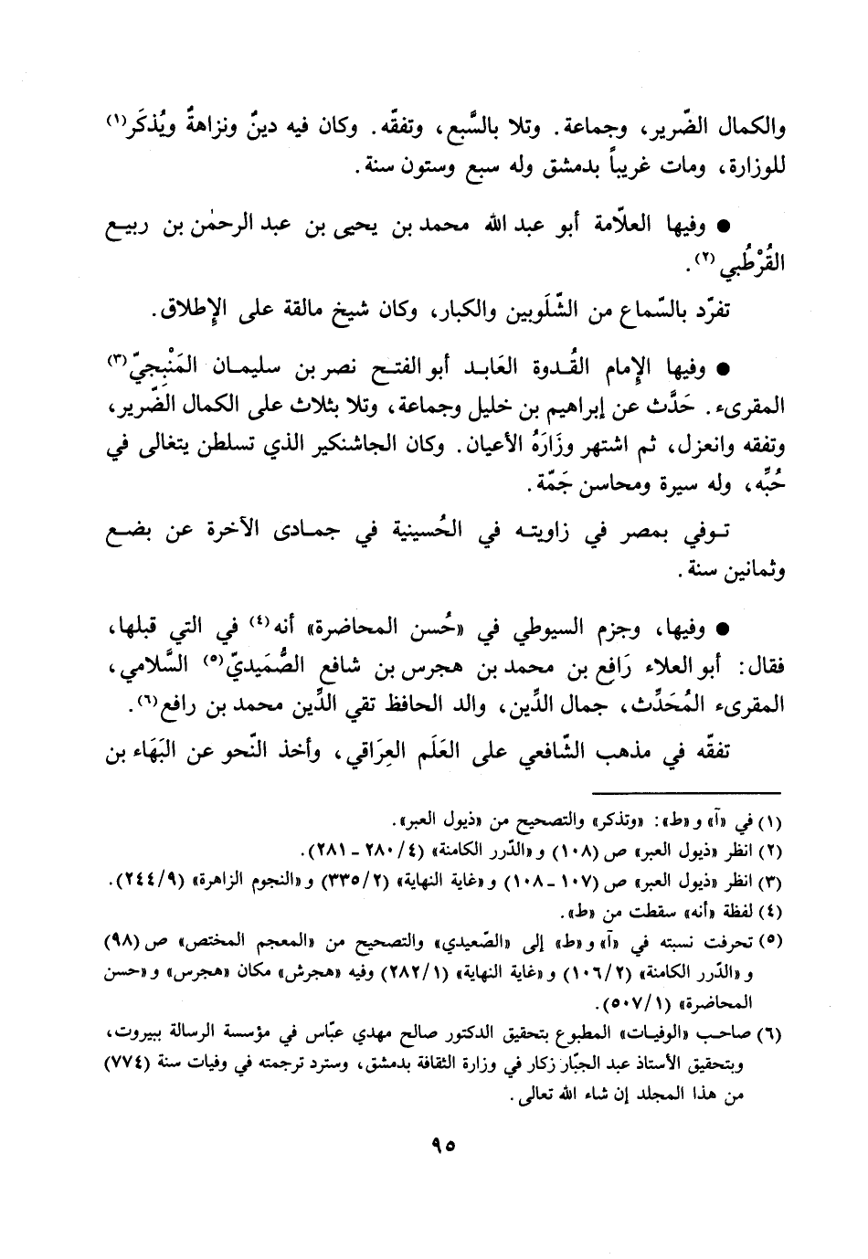 [6] صاحب «الوفيات» المطبوع بتحقيق الدكتور صالح مهدي عبّاس في مؤسسة الرسالة ببيروت، وبتحقيق الأستاذ عبد الجبّار زكار في وزارة الثقافة بدمشق، وسترد ترجمته في وفيات سنة (774) من هذا المجلد إن شاء الله تعالى.