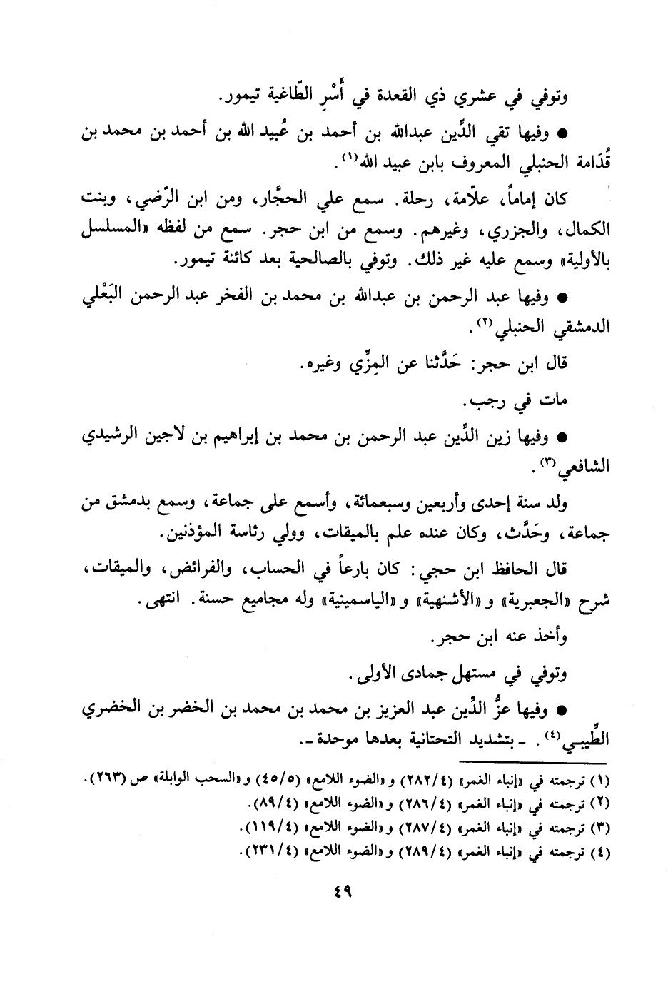 [4] ترجمته في «إنباء الغمر» (4/ 289) و «الضوء اللامع» (4/ 231) .
