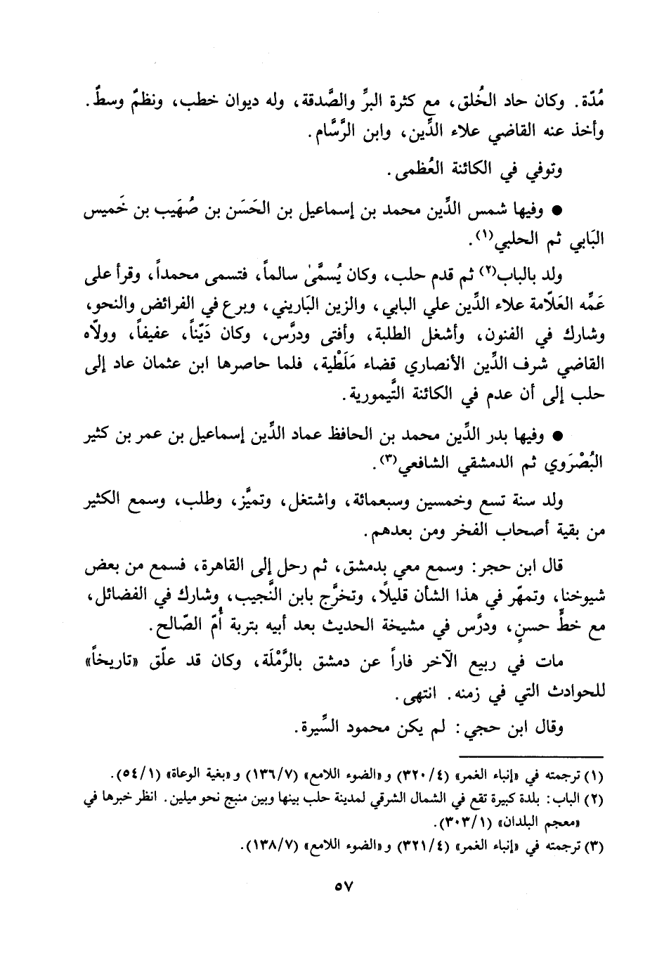 [1] ترجمته في «إنباء الغمر» (4/ 320) و «الضوء اللامع» (7/ 136) و «بغية الوعاة» (1/ 54) .