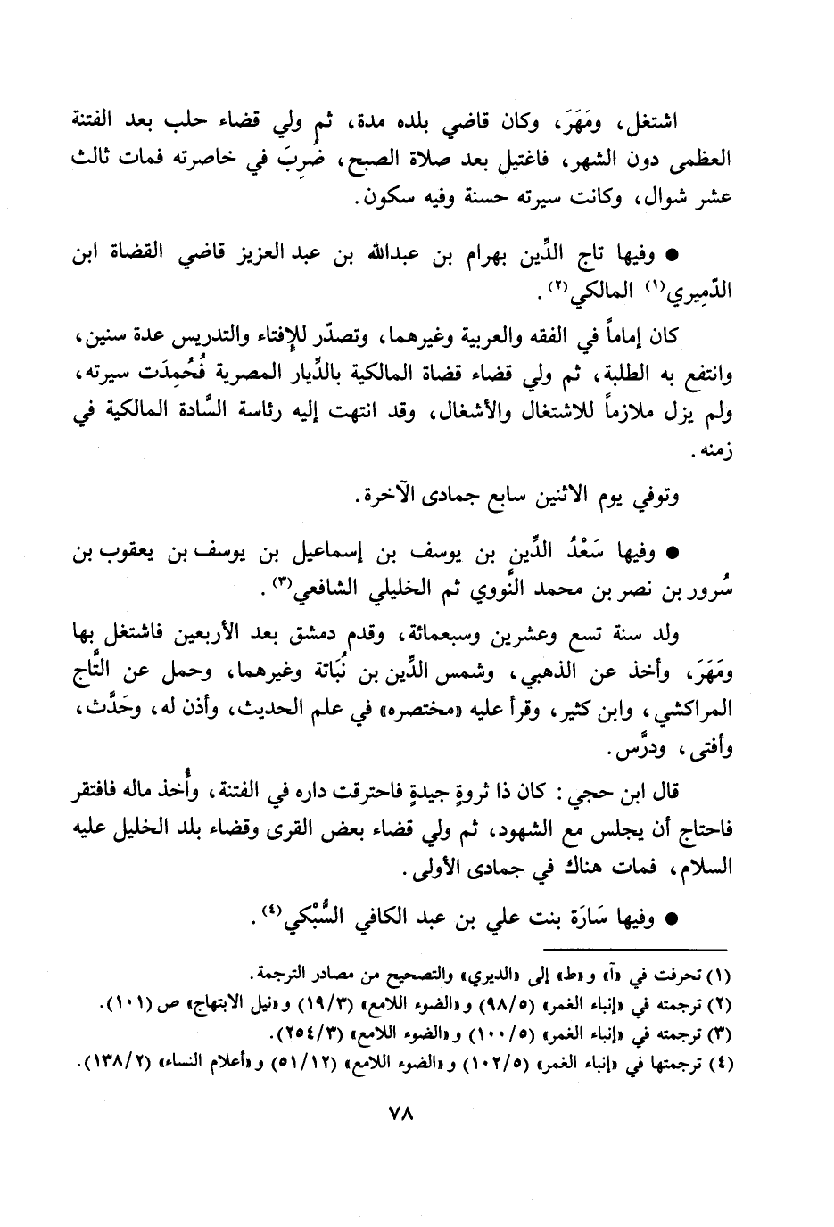 وفيها تاج الدّين بهرام بن عبد الله بن عبد العزيز قاضي القضاة ابن الدّميري [1] المالكي [2] .