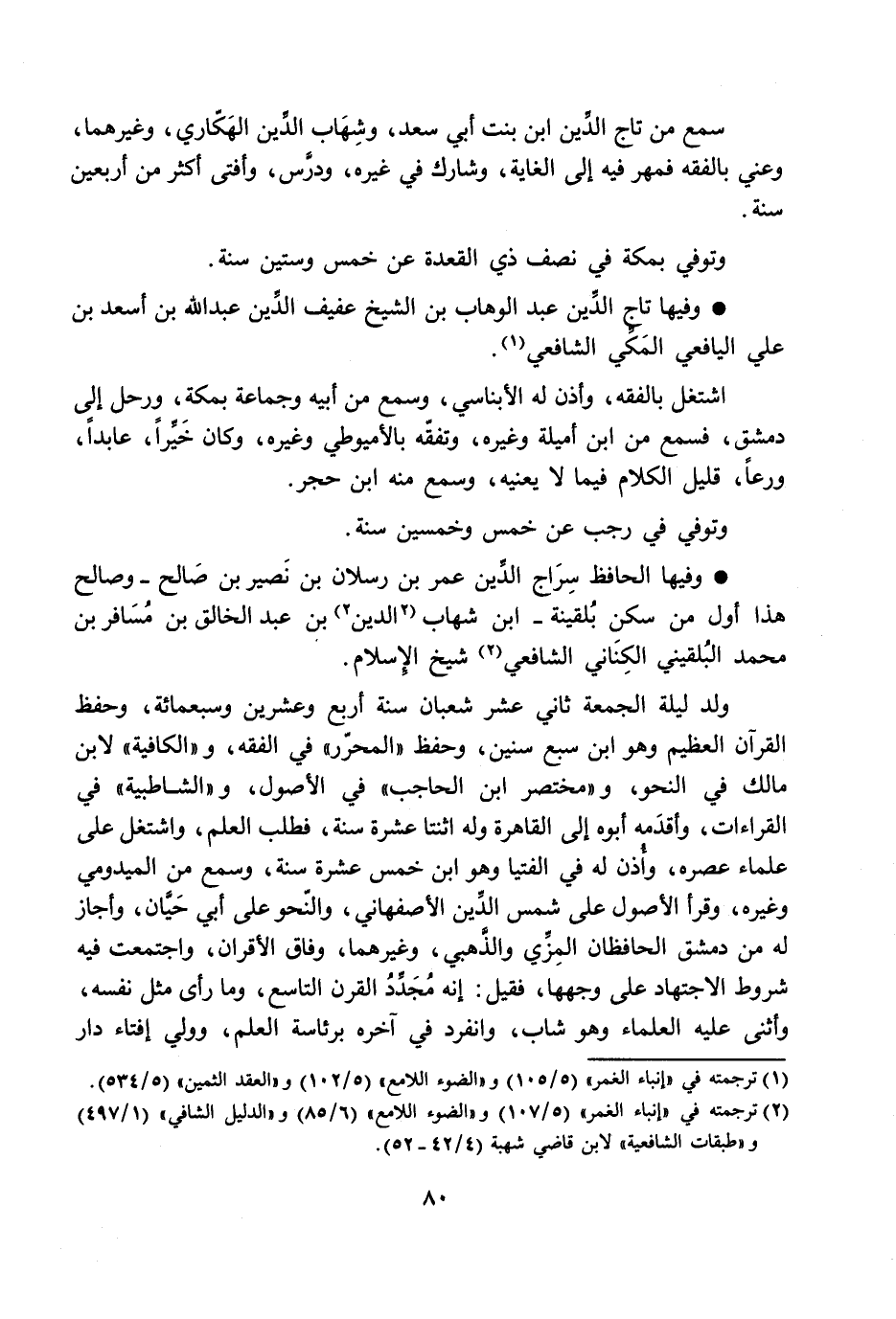[2] ترجمته في «إنباء الغمر» (5/ 107) و «الضوء اللامع» (6/ 85) و «الدليل الشافي» (1/ 497) و «طبقات الشافعية» لابن قاضي شهبة (4/ 42- 52) .
